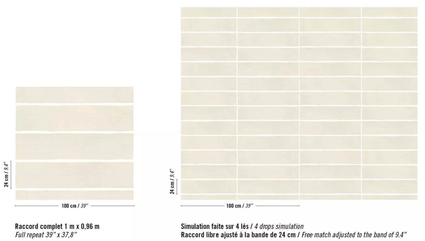 Diese Kollektion wurde als Fortsetzung der Eldorado-Wandbekleidungskollektion konzipiert, die auf dem Design von Atelier d'Artiste basiert. Es stammt aus der Entdeckung des koreanischen Stoffes Pojagi. Diese Textilien, die zum Verpacken von Geschenken und Gegenständen verwendet werden (Chogak ist der beliebte Begriff), bestehen aus mehreren Stoffen. Sie werden hier in Musterlayouts aus beschichtetem Canvas neu interpretiert, die einen Raffia- oder Abaca-Effekt in ruhigen und melodischen Farben widerspiegeln, die für manche fast kreidig sind: Terrakotta, pudriges Rosa, Seegrün und -blau, natürliches Weiß.