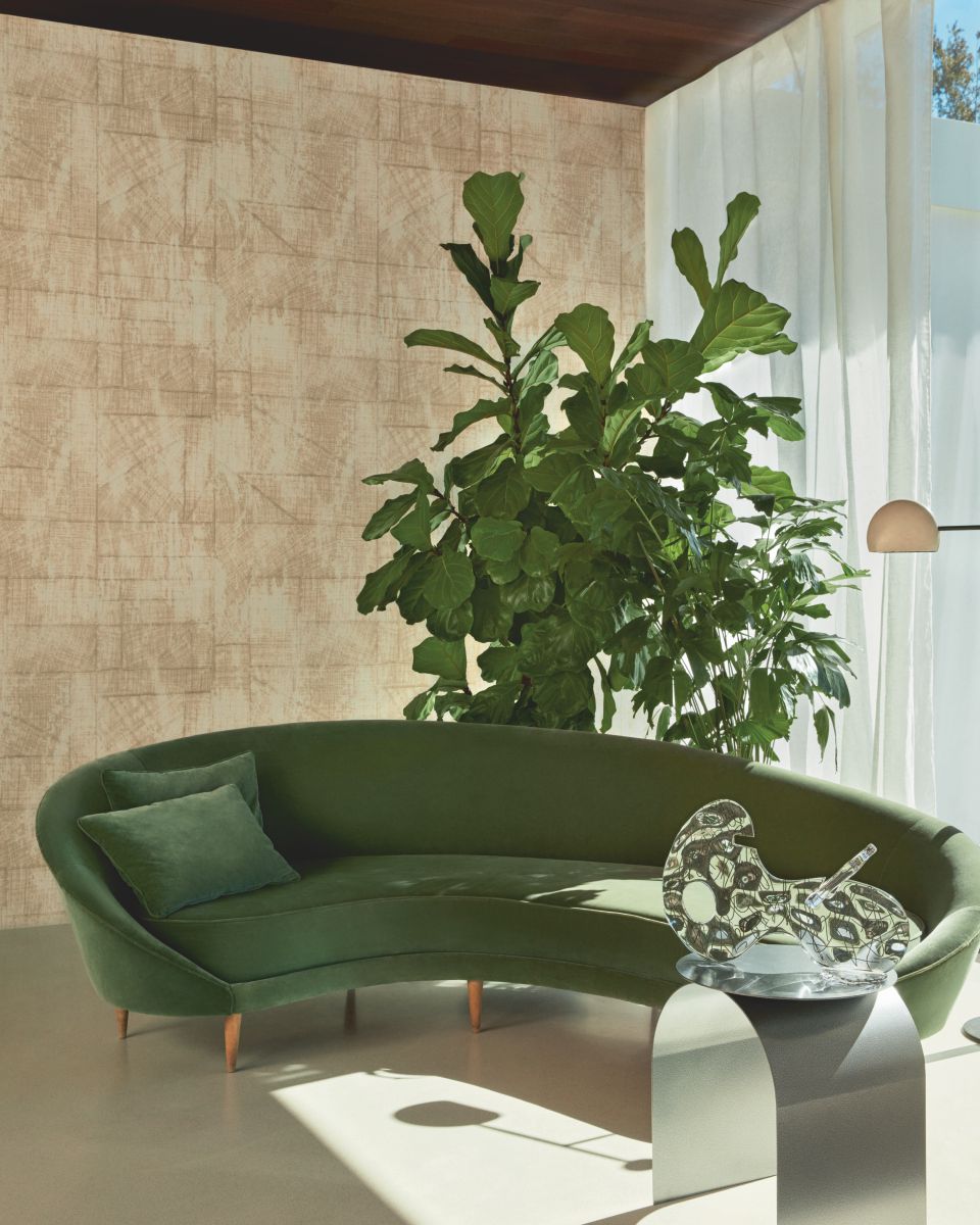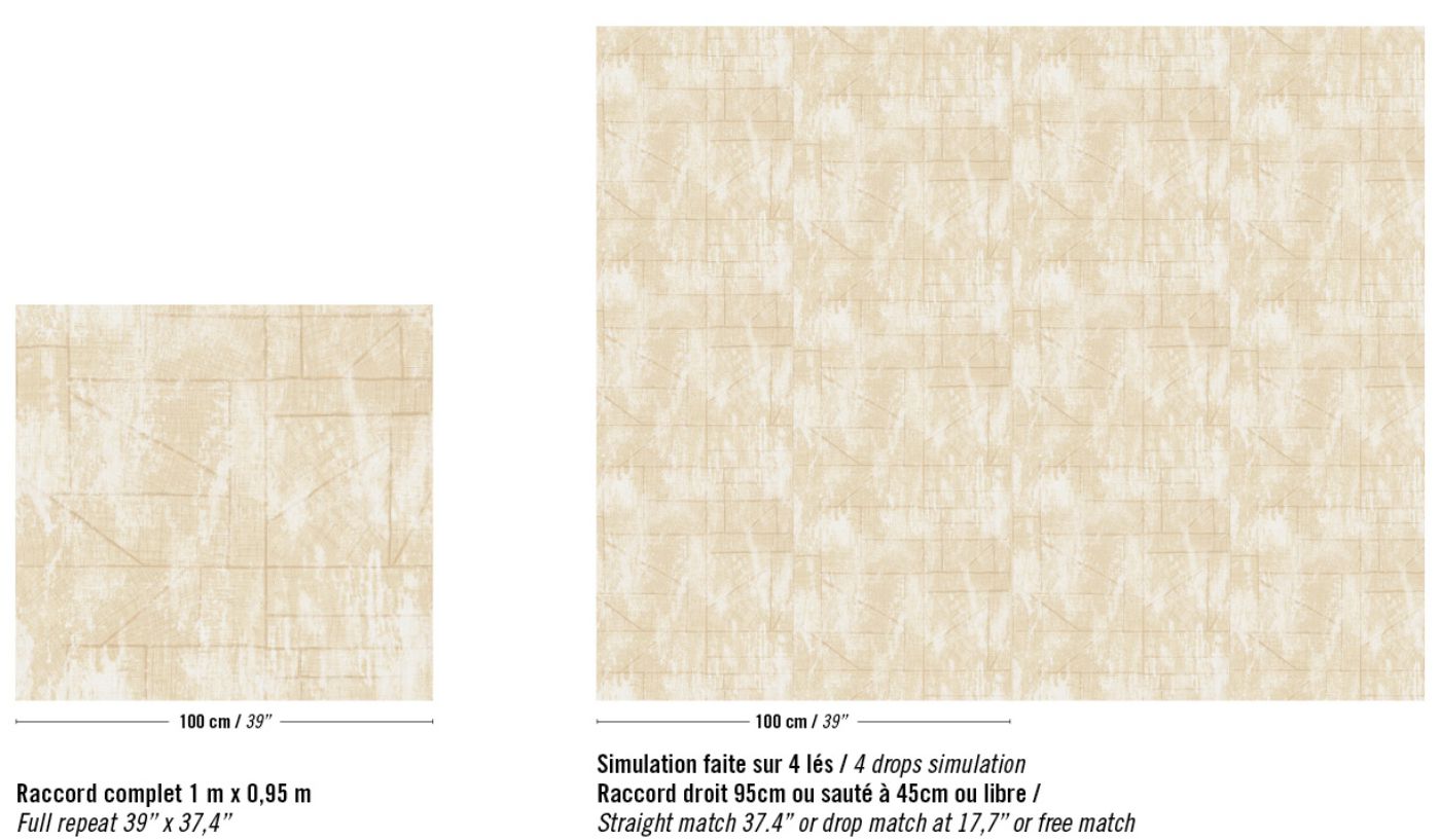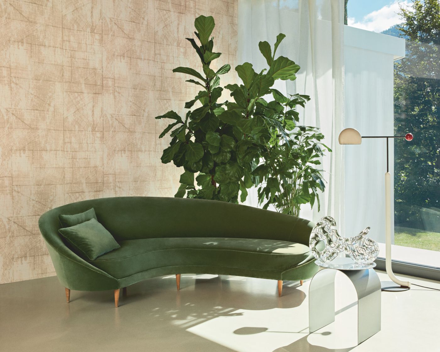 Diese Kollektion wurde als Fortsetzung der Eldorado-Wandbekleidungskollektion konzipiert, die auf dem Design von Atelier d'Artiste basiert. Es stammt aus der Entdeckung des koreanischen Stoffes Pojagi. Diese Textilien, die zum Verpacken von Geschenken und Gegenständen verwendet werden (Chogak ist der beliebte Begriff), bestehen aus mehreren Stoffen. Sie werden hier in Musterlayouts aus beschichtetem Canvas neu interpretiert, die einen Raffia- oder Abaca-Effekt in ruhigen und melodischen Farben widerspiegeln, die für manche fast kreidig sind: Terrakotta, pudriges Rosa, Seegrün und -blau, natürliches Weiß.
