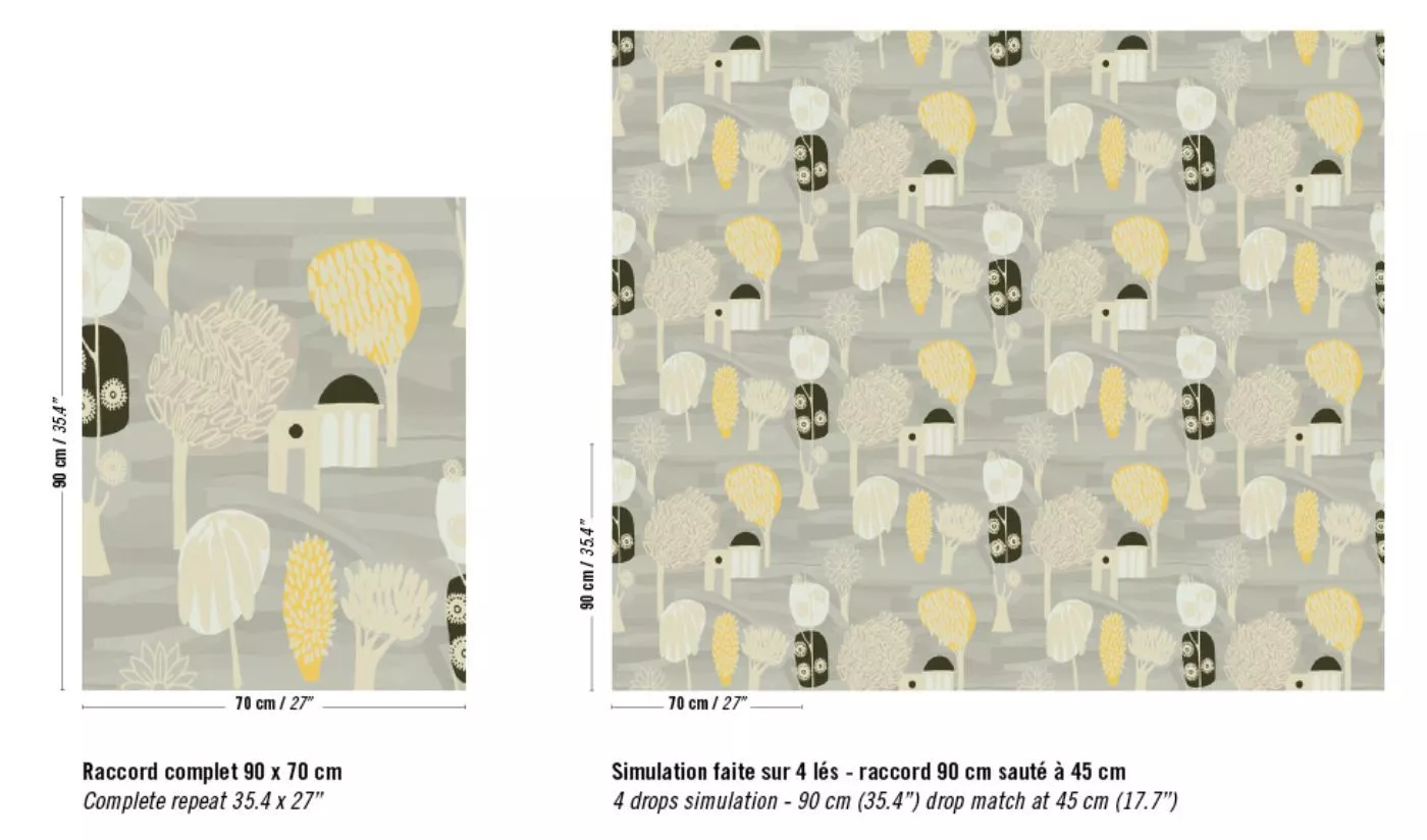 Eine von der indischen Miniaturmalerei inspirierte Tapetensammlung: farbige, stilisierte Darstellungen von Szenen aus dem Alltag. 5 Designs und 3 Panoramamotive.