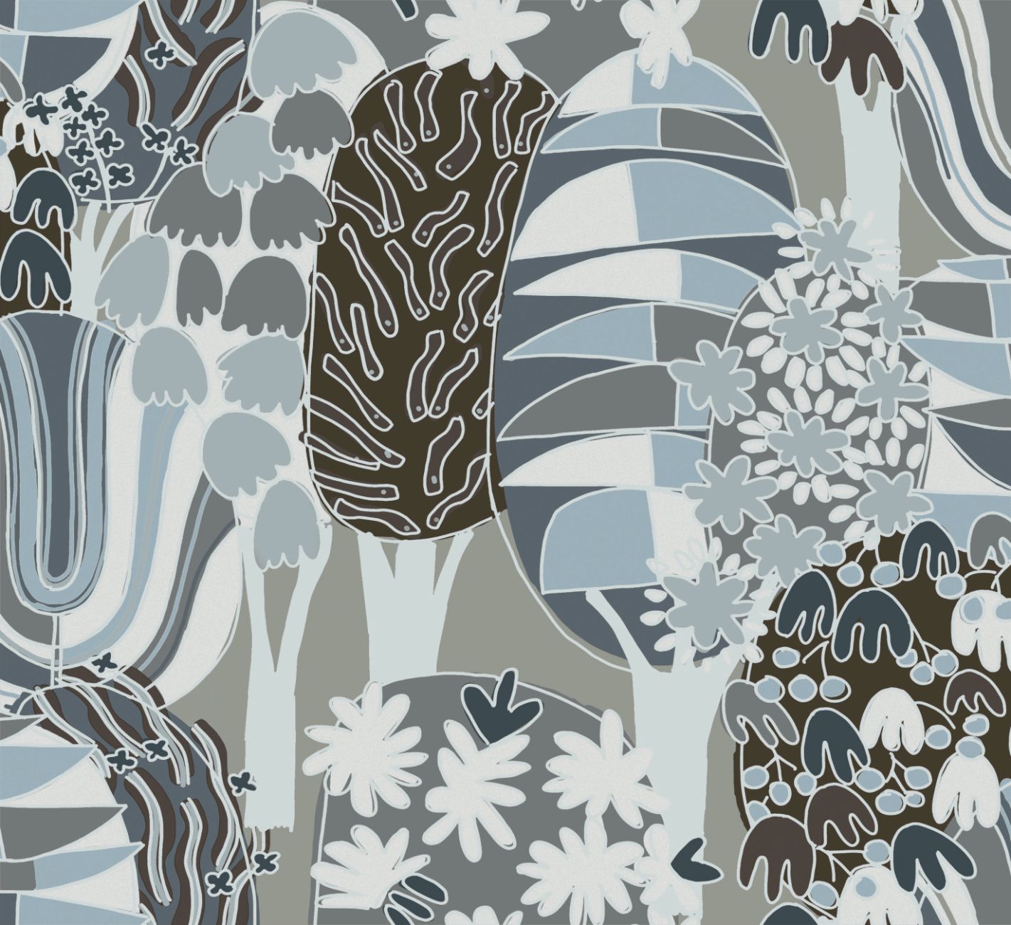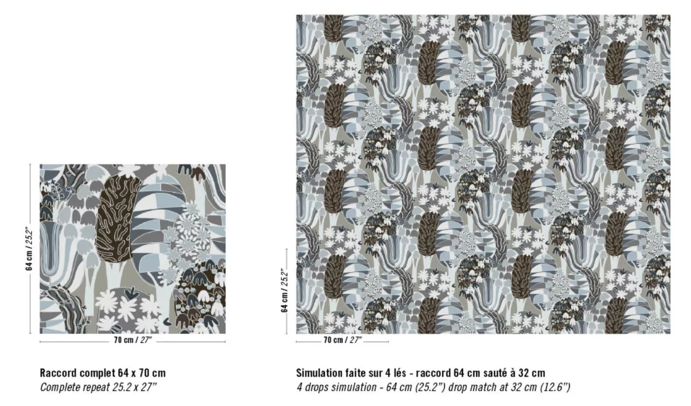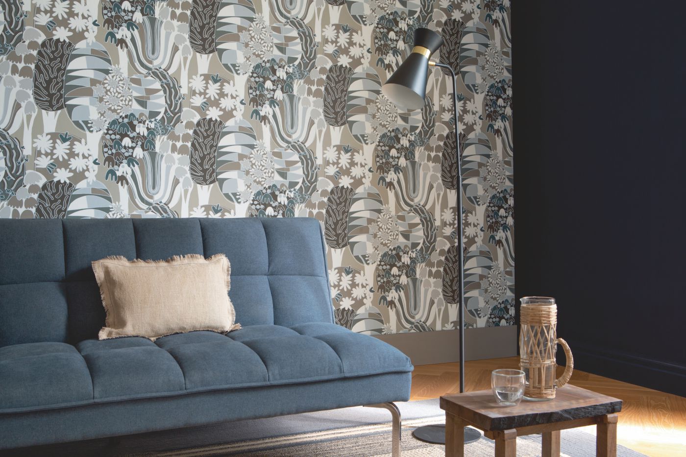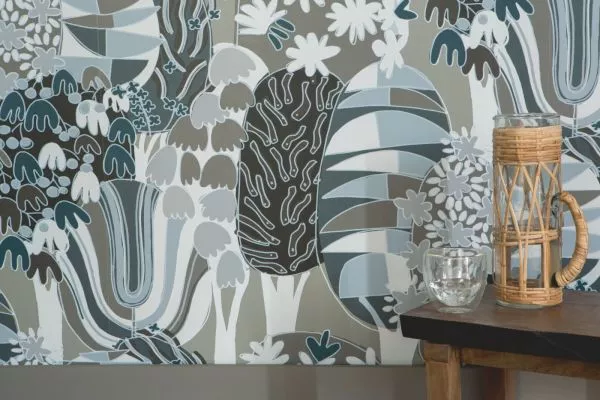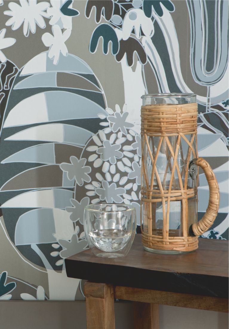 Eine von der indischen Miniaturmalerei inspirierte Tapetensammlung: farbige, stilisierte Darstellungen von Szenen aus dem Alltag. 5 Designs und 3 Panoramamotive.