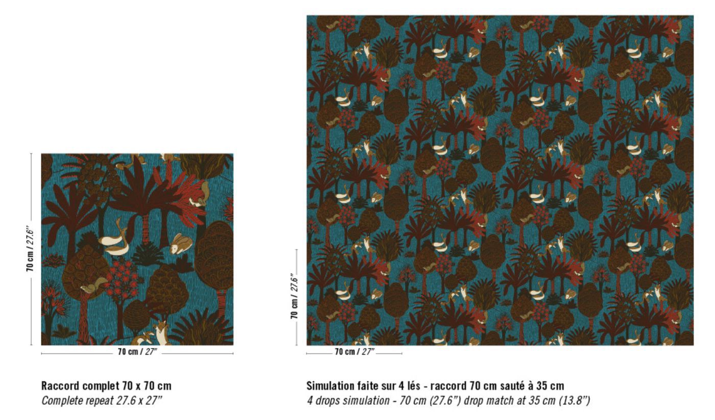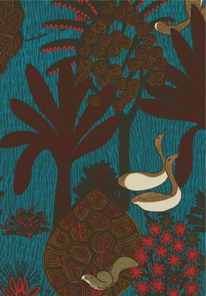 Eine von der indischen Miniaturmalerei inspirierte Tapetensammlung: farbige, stilisierte Darstellungen von Szenen aus dem Alltag. 5 Designs und 3 Panoramamotive.