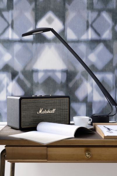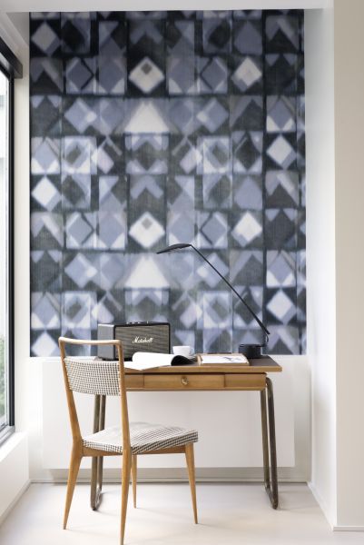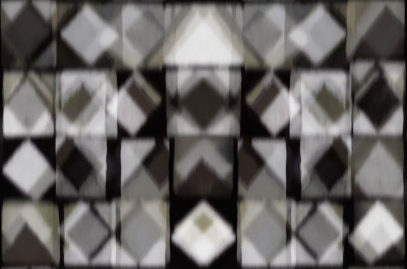 Mehrfarbiges Dessin, inspiriert von leuchtenden Glasmalereien mit Weichzeichnereffekt.