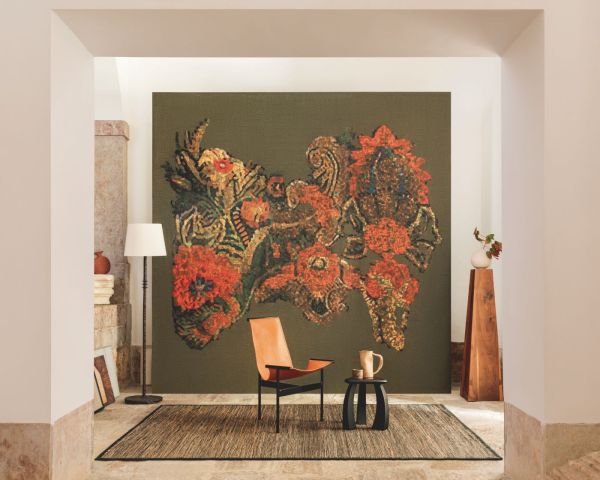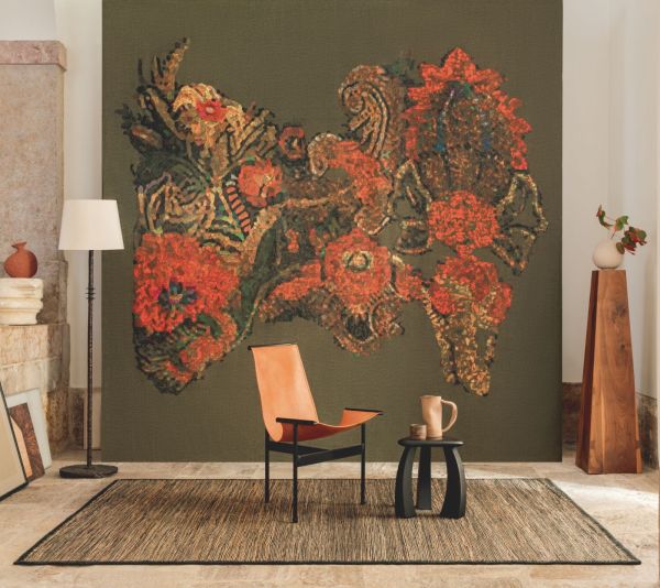 Verspielt, lebendig, extrovertiert ... Das Leinengewebe erweitert hier sein Repertoire mit Hilfe von naiven und üppigen Stickereien. Man erkennt die ursprüngliche Handwerksarbeit mit klaren und warmen Akzenten, die spontan und natürlich erscheinen. Das Material ist wie ein farbiger Zwischenruf, der ganz plötzlich die Vorstellungskraft aktiviert.