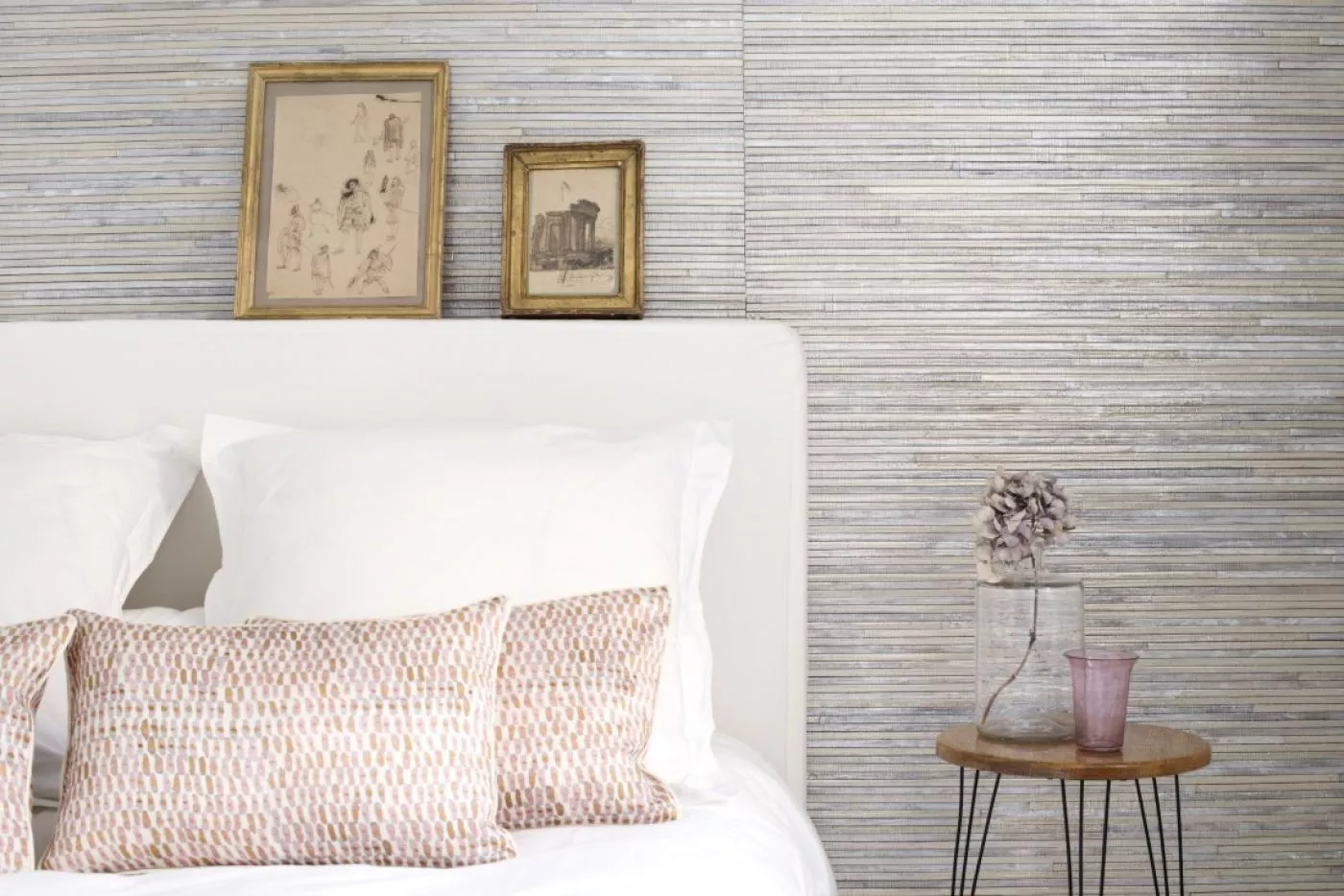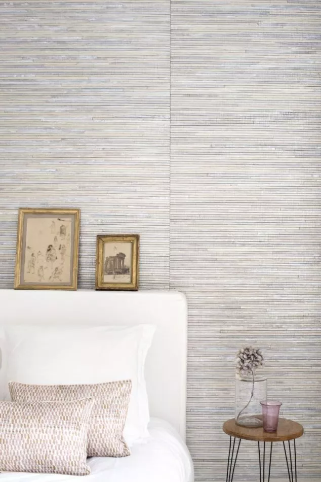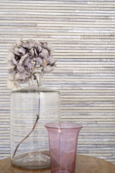 Abaca Holz Handgearbeitet mit Metallicgarn umwickelt und auf Vliesträger kaschiert.