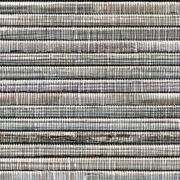 Abaca Holz Handgearbeitet mit Metallicgarn umwickelt und auf Vliesträger kaschiert.