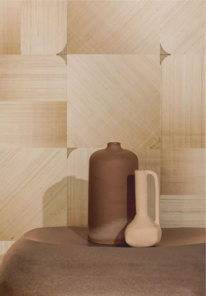 In der Maestria-Kollektion verbinden Pflanzenfasern Gesso und Sisal auf innovative Weise und entführen uns in anspruchsvolle neue Atmosphären: mal beruhigend, mal verspielt, aber stets elegant.