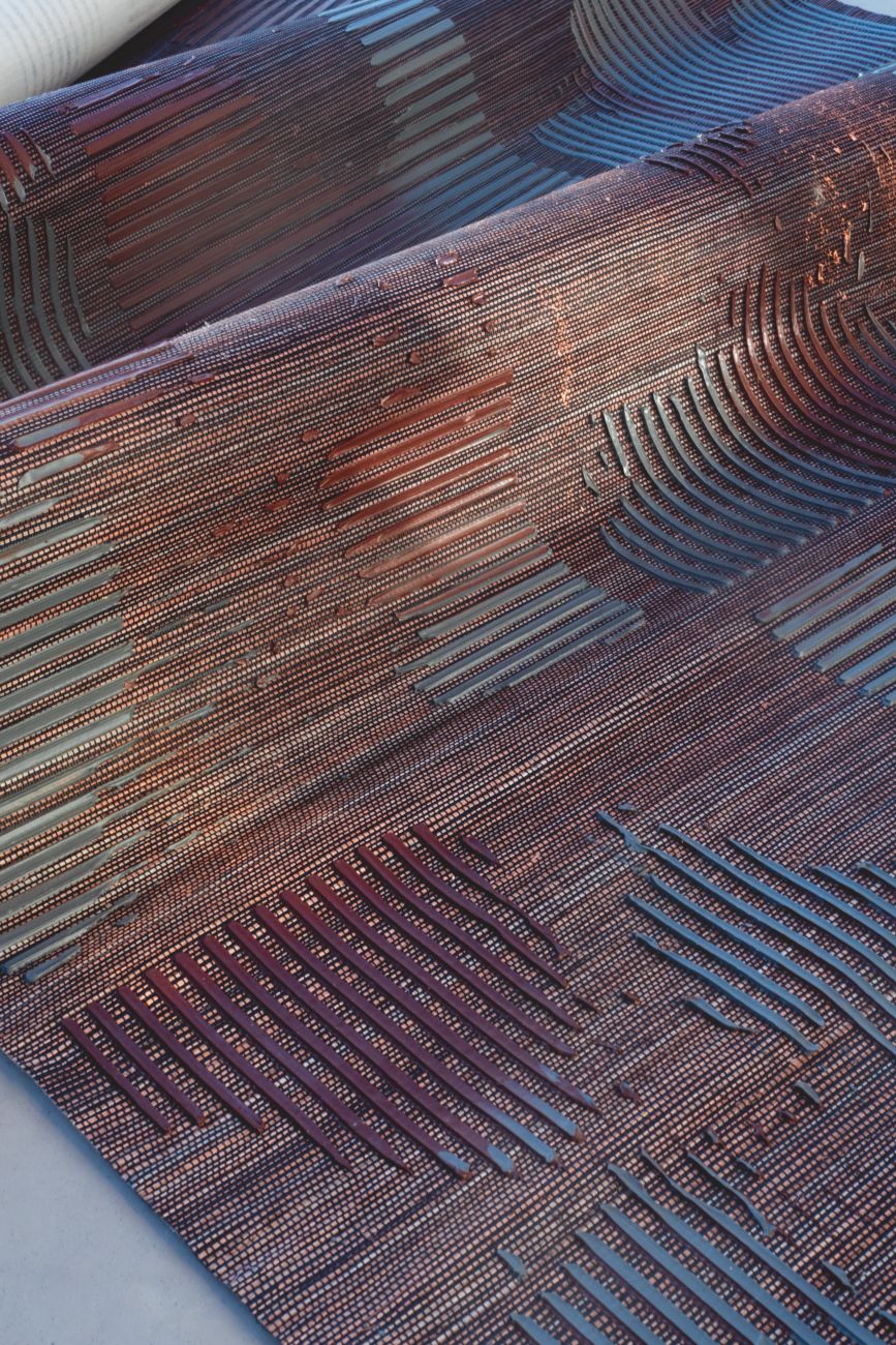 Zusammensetzung : 70% Sisal 25% Acrylic colour 5% Metallic foil auf Papierrücken