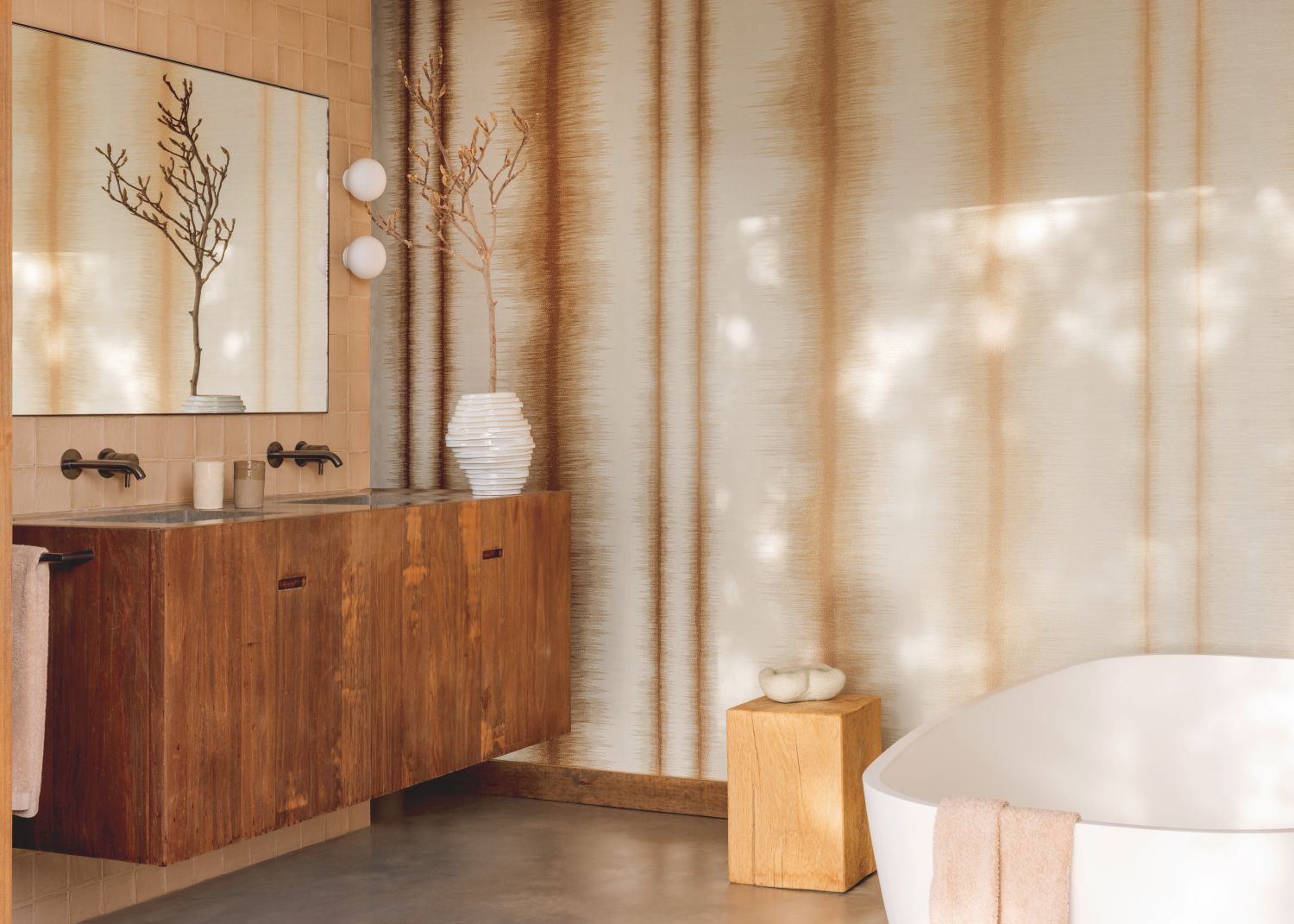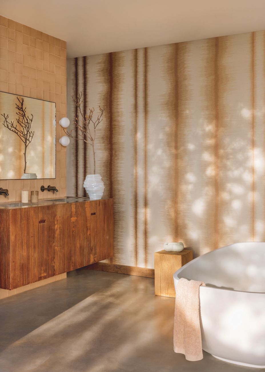 In der Maestria-Kollektion verbinden Pflanzenfasern Gesso und Sisal auf innovative Weise und entführen uns in anspruchsvolle neue Atmosphären: mal beruhigend, mal verspielt, aber stets elegant.