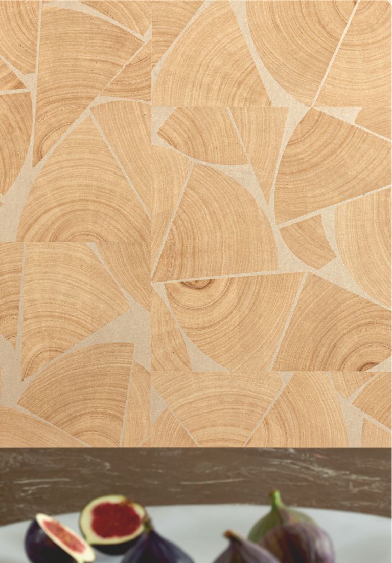 Auf der Suche nach Bewegung hat hier das Holz seine starre Stille gegen den Rhythmus eingetauscht. Das Material erscheint entweder ganz klar und geradlinig oder zerfällt in Bruchteile; oder aber es ist wie zerrissen und zeigt seine Faserstruktur auf einem Schachbrett - wie eine poetisch gedämpfte Partitur. Mit seinen Schnittstellen, die so fein wie aus Papier erscheinen, wird ein Design mit einzigartigen geometrischen und grafischen Kompositionen geschaffen, die alle samt handgefertigt sind.