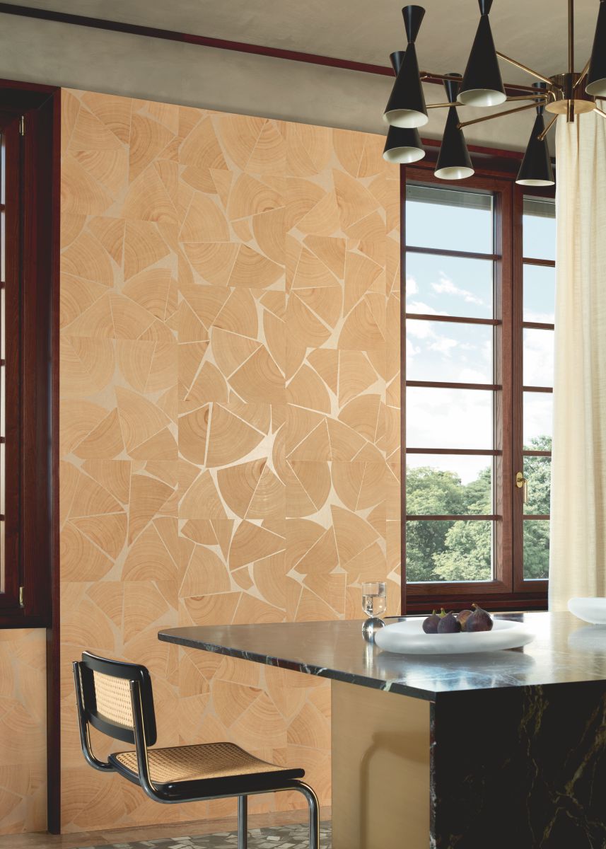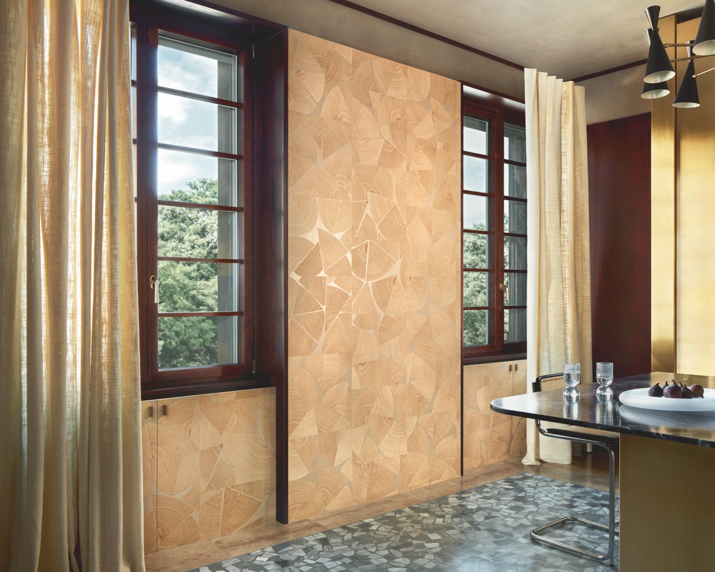 In seinen natürlichen, sorgfältig zusammengesetzten Kompositionen sticht das Paulowina-Holz hervor und erfindet einen schier grafischen Stil. Durch neue Techniken gefärbt, wirkt es sowohl warm als auch kühl und lässt einen metallischen Grundton erahnen.