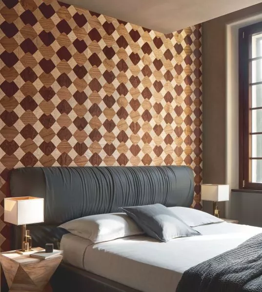 Auf der Suche nach Bewegung hat hier das Holz seine starre Stille gegen den Rhythmus eingetauscht. Das Material erscheint entweder ganz klar und geradlinig oder zerfällt in Bruchteile; oder aber es ist wie zerrissen und zeigt seine Faserstruktur auf einem Schachbrett - wie eine poetisch gedämpfte Partitur. Mit seinen Schnittstellen, die so fein wie aus Papier erscheinen, wird ein Design mit einzigartigen geometrischen und grafischen Kompositionen geschaffen, die alle samt handgefertigt sind.
