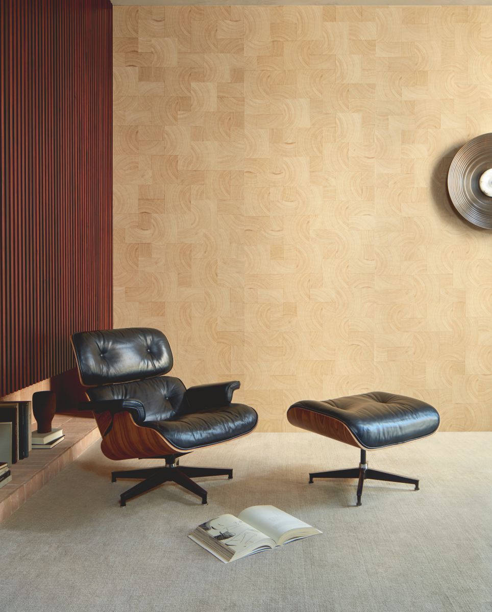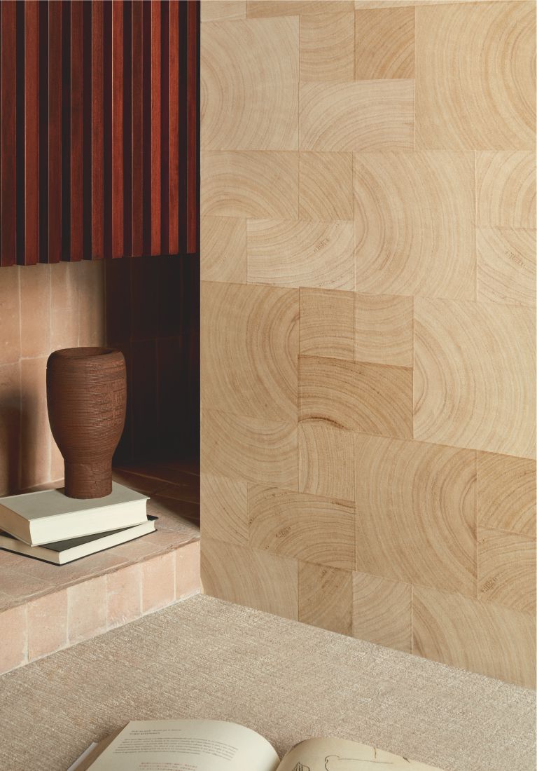 Auf der Suche nach Bewegung hat hier das Holz seine starre Stille gegen den Rhythmus eingetauscht. Das Material erscheint entweder ganz klar und geradlinig oder zerfällt in Bruchteile; oder aber es ist wie zerrissen und zeigt seine Faserstruktur auf einem Schachbrett - wie eine poetisch gedämpfte Partitur. Mit seinen Schnittstellen, die so fein wie aus Papier erscheinen, wird ein Design mit einzigartigen geometrischen und grafischen Kompositionen geschaffen, die alle samt handgefertigt sind.