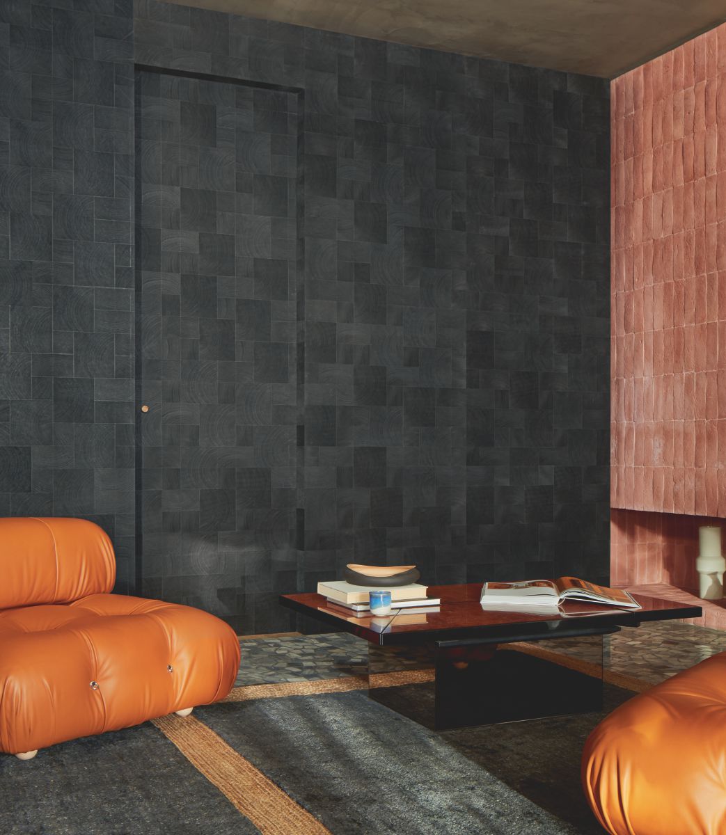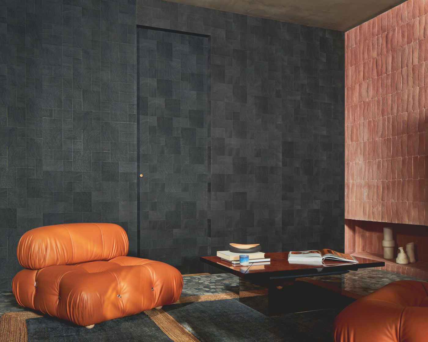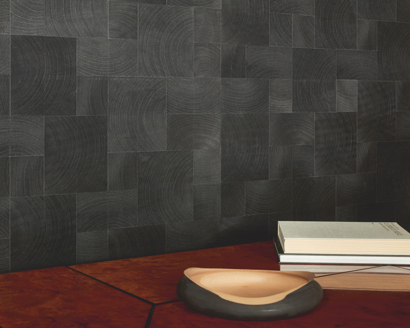 In seinen natürlichen, sorgfältig zusammengesetzten Kompositionen sticht das Paulowina-Holz hervor und erfindet einen schier grafischen Stil. Durch neue Techniken gefärbt, wirkt es sowohl warm als auch kühl und lässt einen metallischen Grundton erahnen.