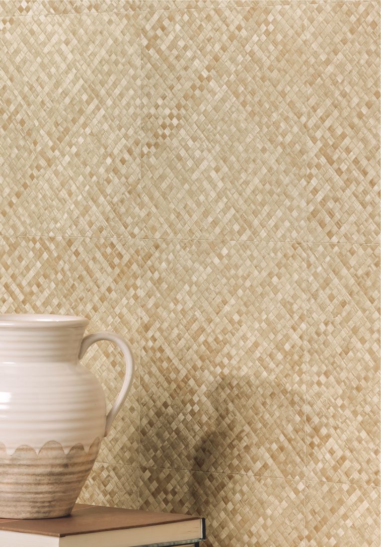 Abaca wird durch Weben offenbart. Raffiagarn trifft auf Bananenbaumfaser. Natürlicher Rattan zeigt seine Authentizität in Intarsien. Eine Palme wird durch zartes Calepinage ins Licht gerückt... Diese Kreationen veredeln die Schönheit natürlicher Fasern, interpretieren ihre Essenz in gewebten Effekten mit flüchtigen Details. Genauso wie die Natur haben sie die Kraft, uns zu erheben und zu beruhigen, genauso wie sie uns inspirieren.