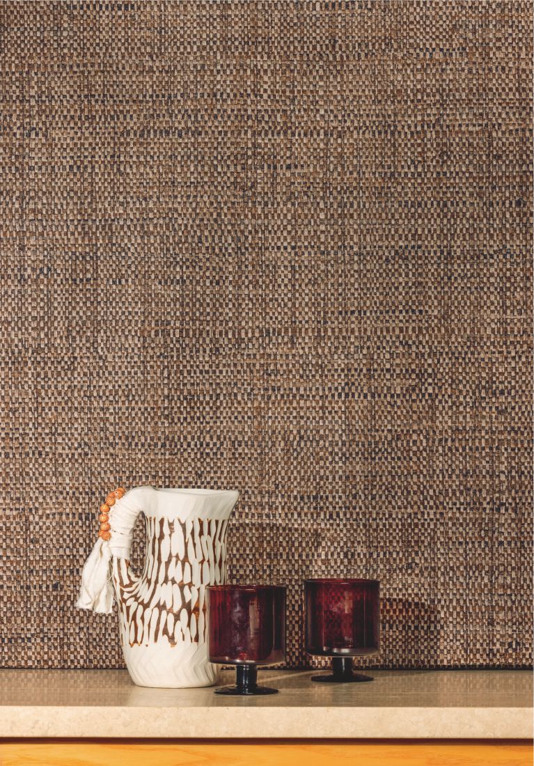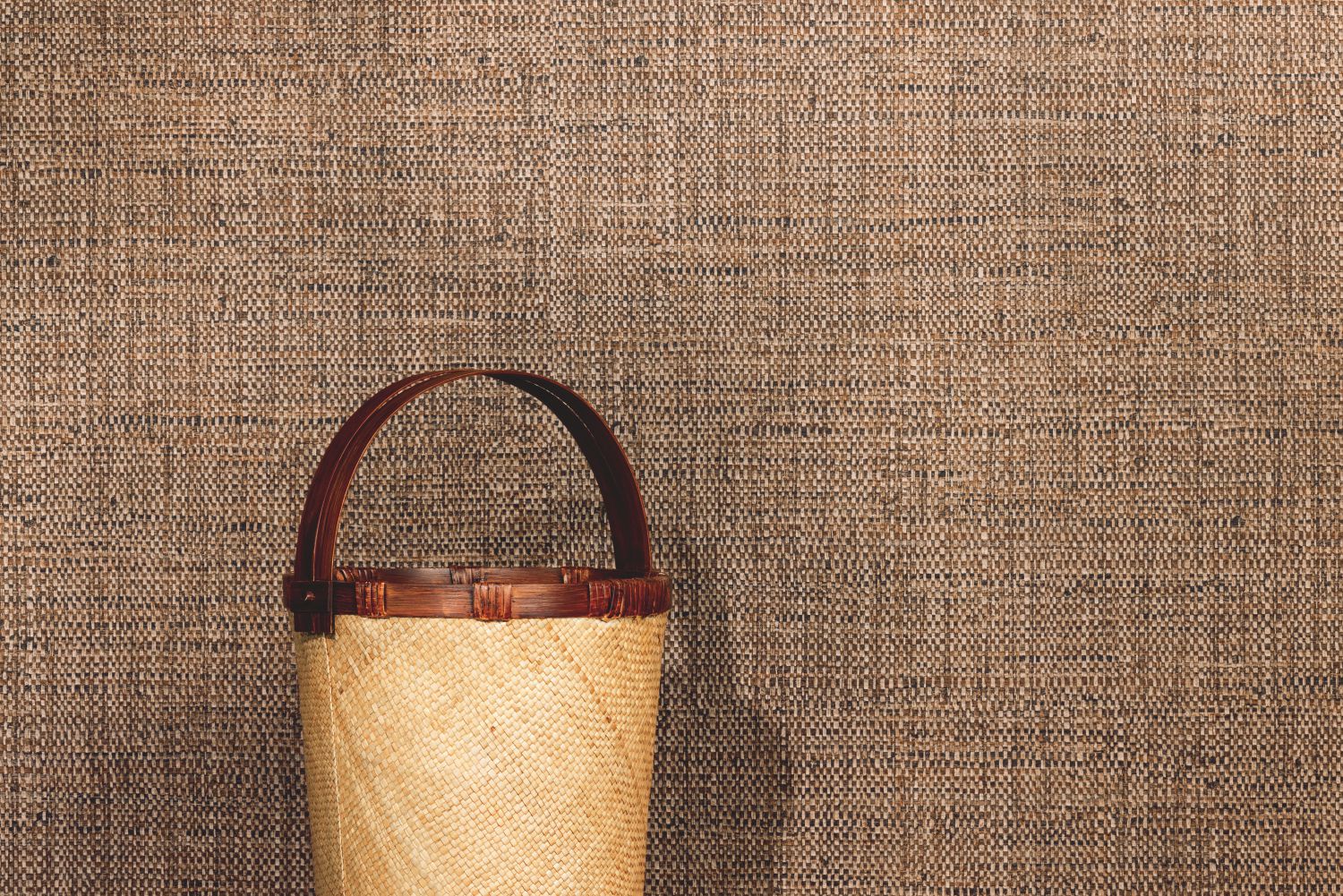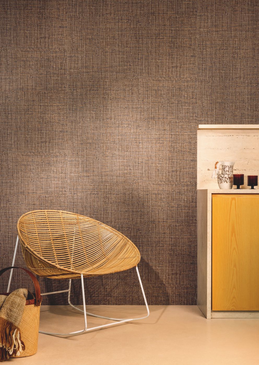 Beschreibung: Geprägte Vinyltapete mit dem Aussehen pflanzlicher Fasern