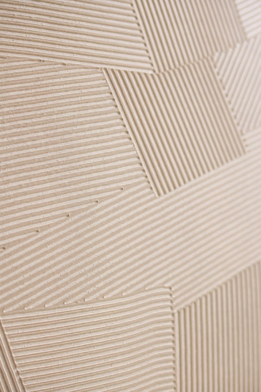 "Combed Plaster" schöpft aus der Bescheidenheit traditioneller Gipsarbeiten und feiert die Schönheit der jahrhundertealten Bautechniken, die Funktionalität und Praktikabilität in eine beeindruckende visuelle Erzählung verwandeln. Jeder Strich reflektiert die Meisterschaft alter Techniken, indem er die Nuancen der traditionellen Gipsanwendung akribisch repliziert und verfeinert - ein Zeugnis für sorgfältige Handwerkskunst.