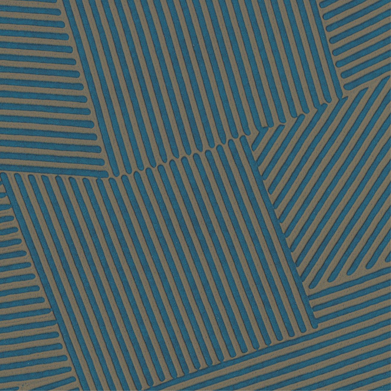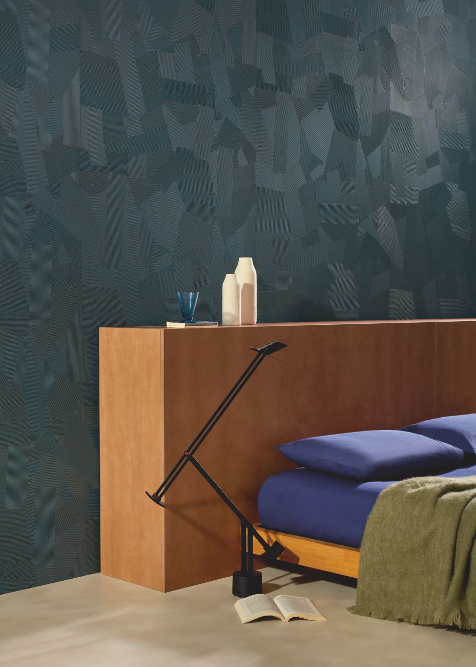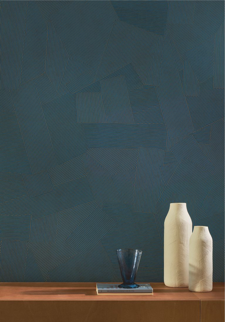 In dieser Kollektion dient die Kunst als visuelle Aufzeichnung von Bewegung: Die Gesten der Künstler werden durch die verspielte, kartografische Komposition von Hunderten winziger Gipsrillen eingefangen.
