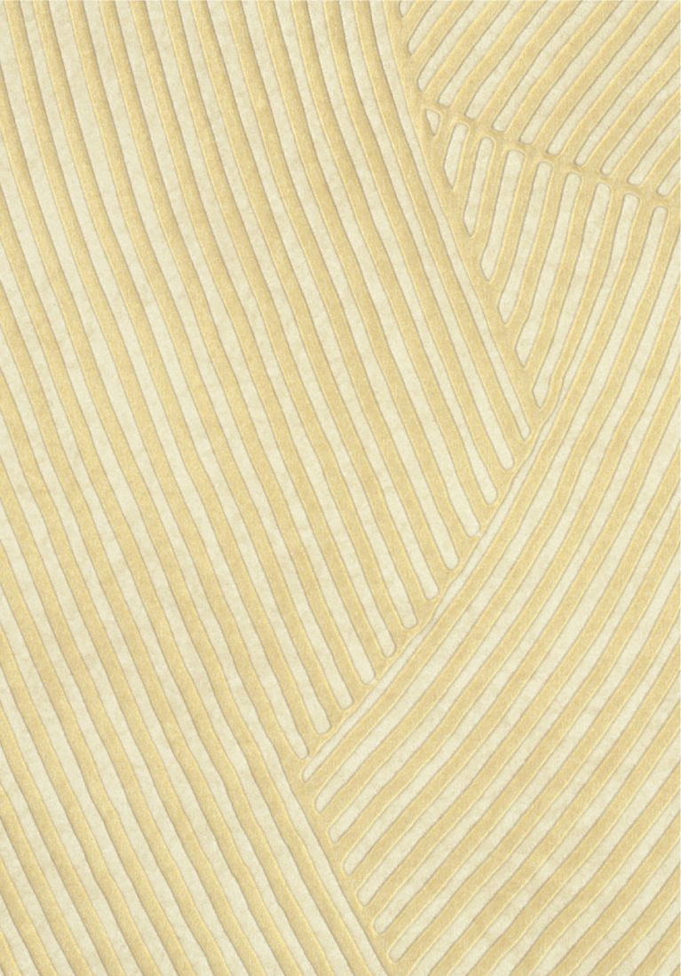 In dieser Kollektion dient die Kunst als visuelle Aufzeichnung von Bewegung: Die Gesten der Künstler werden durch die verspielte, kartografische Komposition von Hunderten winziger Gipsrillen eingefangen.