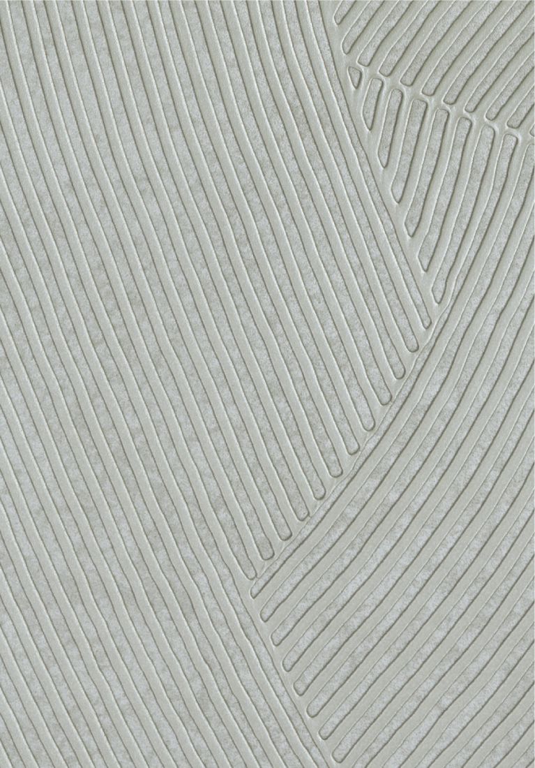 In dieser Kollektion dient die Kunst als visuelle Aufzeichnung von Bewegung: Die Gesten der Künstler werden durch die verspielte, kartografische Komposition von Hunderten winziger Gipsrillen eingefangen.