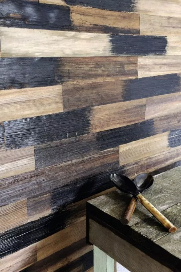 Geklebte Abacá-Rinde, handwerklich gefärbt und von Hand getüncht.