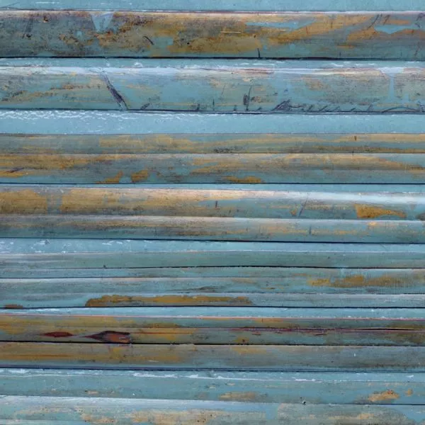 Eine Collage von gefärbtem Bambus auf gelacktem Hintergrund.