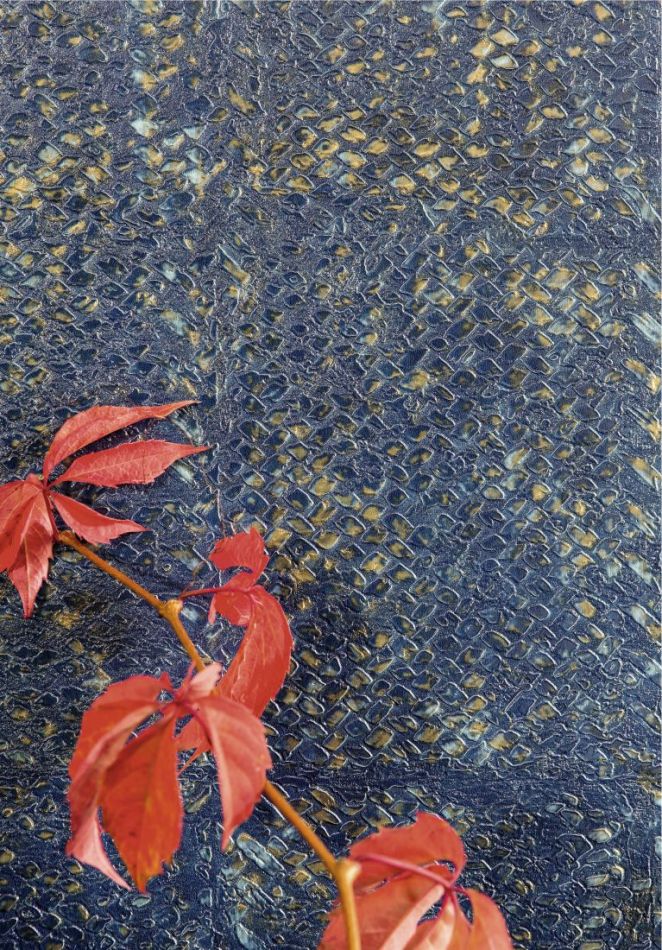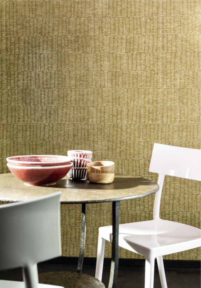 Dieses mit Vinyl bestrichene Papier in Waffelstruktur ist eine Hommage an die Verarbeitung einer natürlichen Faser zu Objekten des Alltags.