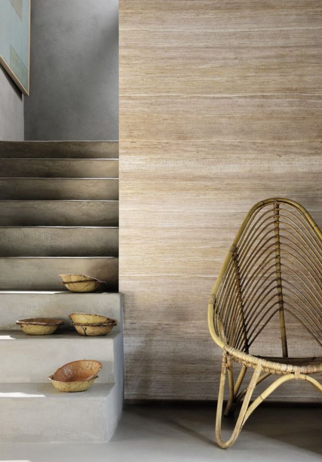 Direkt in die Sinnlichkeit der Pflanzenwelt führen diese beiden Tapeten, in deren Kraft und Authentizität deutlich wird, was aus dem Zusammenwirken von Mensch und Natur entstehen kann. Wie virtuose Schwestern teilen sich die von Hand bearbeiteten Abaca-Fasern und Bananenblätter das Licht und die Begegnungen: gefärbter Gips, metallische Reflexe, überraschende Farben ...