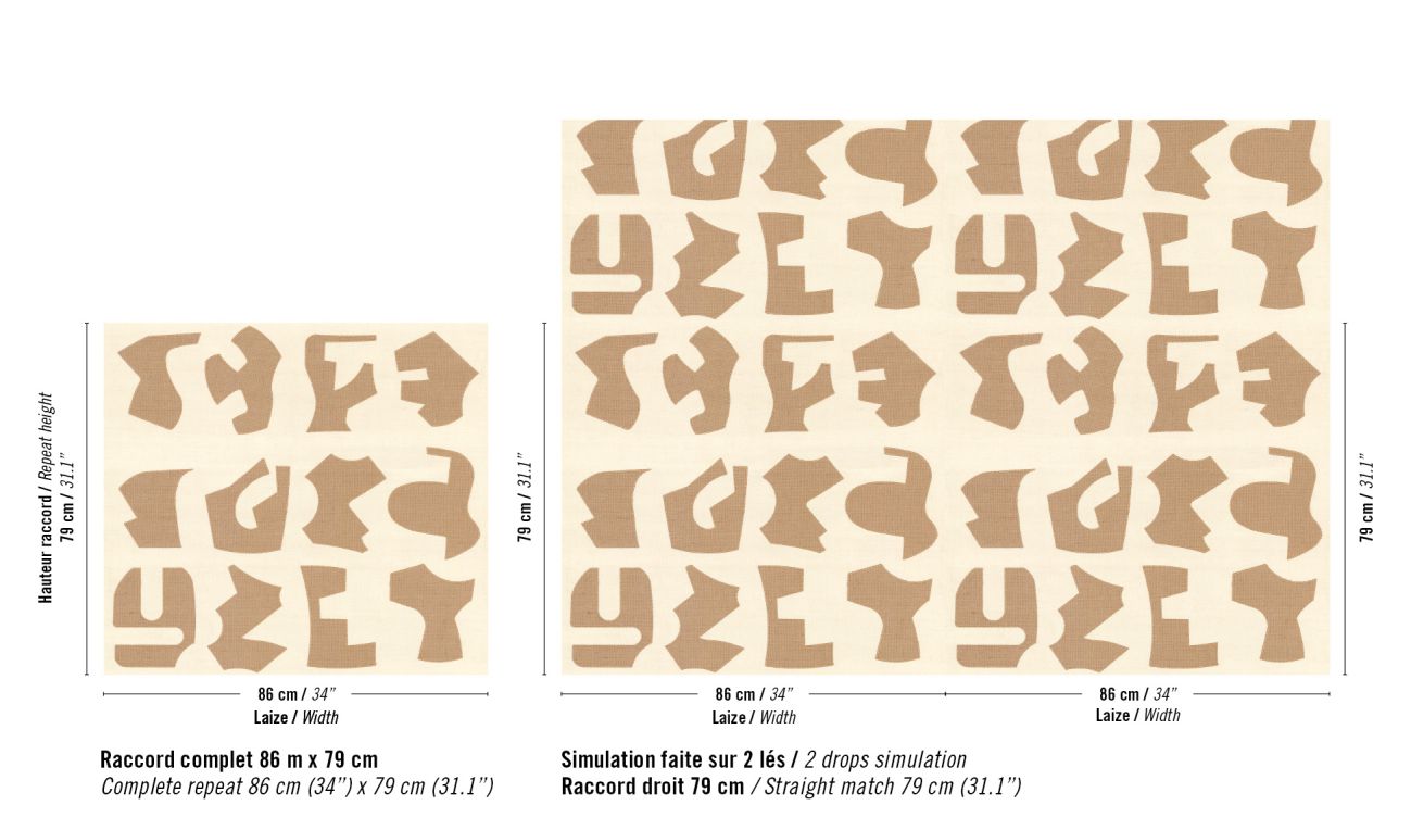 Die Kreationen sind geprägt vom ruhigen Charme des Yūgen und der tiefgründigen Schönheit Japans. Indem die Kollektion die Verbindung zwischen Natur, Licht, Material und Emotion erkundet, verbreitet sie ruhige, beruhigende Atmosphären. Mit dem Ziel, Einfachheit im Raum zu schaffen, sprechen die Kreationen eine Sprache der Gelassenheit, beginnen einen Dialog zwischen Leere und Fülle, indem sie luftig abstrakte Motive zu Wort kommen lassen: strukturierte Faux-Uni-Stoffe spielen hier mit kunstvollen Knoten. Raphia, Leinen, Wolle – diese lebendigen Materialien zeigen durch ihre natürlichen Unebenheiten taktile Schattierungen. Details sind hier auf ersten Blick unsichtbar, belohnen aber das geduldige Auge. Dort symbolisiert ein riesiger, skizzenhaft gestickter Baum auf Panorama-Tapete die Kraft der Ruhe. Mit klarer Einfachheit bietet die feine, diskrete Ästhetik von Origines einen fast schon mystischen Zufluchtsort der Sinne, eine Einladung zur Meditation.Zusammensetzung : 62% LI 38% Jute auf Vliesrücken