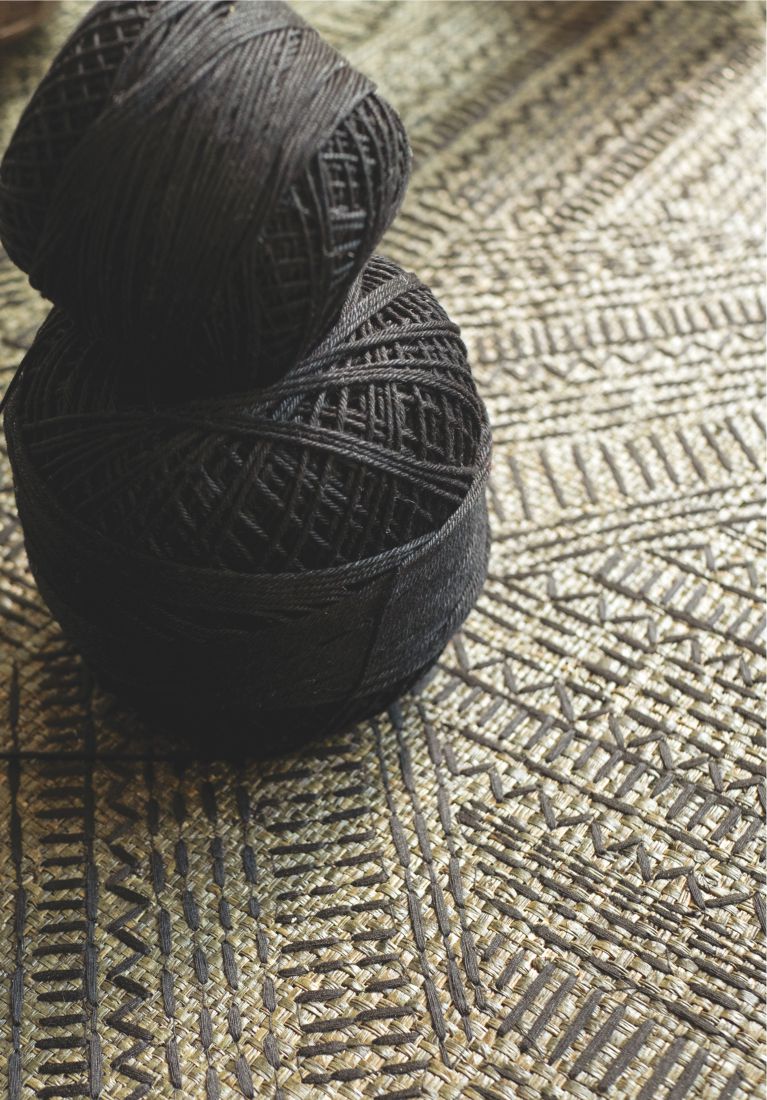 Die Kreationen sind geprägt vom ruhigen Charme des Yūgen und der tiefgründigen Schönheit Japans. Indem die Kollektion die Verbindung zwischen Natur, Licht, Material und Emotion erkundet, verbreitet sie ruhige, beruhigende Atmosphären. Mit dem Ziel, Einfachheit im Raum zu schaffen, sprechen die Kreationen eine Sprache der Gelassenheit, beginnen einen Dialog zwischen Leere und Fülle, indem sie luftig abstrakte Motive zu Wort kommen lassen: strukturierte Faux-Uni-Stoffe spielen hier mit kunstvollen Knoten. Raphia, Leinen, Wolle – diese lebendigen Materialien zeigen durch ihre natürlichen Unebenheiten taktile Schattierungen. Details sind hier auf ersten Blick unsichtbar, belohnen aber das geduldige Auge. Dort symbolisiert ein riesiger, skizzenhaft gestickter Baum auf Panorama-Tapete die Kraft der Ruhe. Mit klarer Einfachheit bietet die feine, diskrete Ästhetik von Origines einen fast schon mystischen Zufluchtsort der Sinne, eine Einladung zur Meditation.Zusammensetzung : 83% Raffia 17% PES auf Vliesrücken
