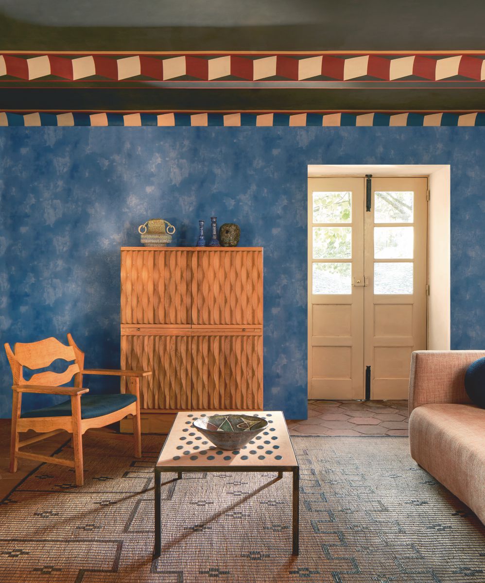 Mediterraner Kalk und gefärbter Gips verzaubern Mauern im Sonnenlicht, wo in kleinen Gässchen der Duft von Gewürzen zu ahnen ist. Schelmenhaft zeigen sich die Materialien mit ihren von der Sonne der Mittelmeers gezeichneten Pigmenten. Ihre Farben, manchmal mit Patina überzogen, lassen ihren mineralischen Ursprung erkennen. Sie erwecken den Eindruck von Erde und alten Mauern, auf denen Katzen zu balancieren scheinen.