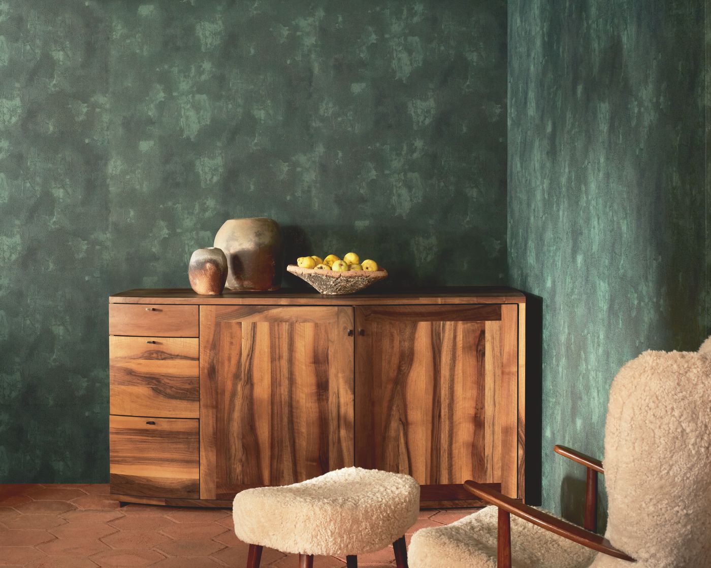 Ein Eindruck von Kreide, fast sandfarben und matt, ähnlich wie Kalk - dem Vinyl gelingt es, dies entstehen zu lassen. Diese Kollektion besteht aus zwei Uni-Materialien - die, der warmen Farben einerseits, und die, der mineral-farbenen Travertins andererseits.