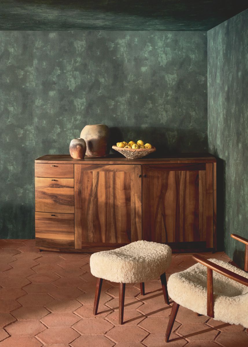 Mediterraner Kalk und gefärbter Gips verzaubern Mauern im Sonnenlicht, wo in kleinen Gässchen der Duft von Gewürzen zu ahnen ist. Schelmenhaft zeigen sich die Materialien mit ihren von der Sonne der Mittelmeers gezeichneten Pigmenten. Ihre Farben, manchmal mit Patina überzogen, lassen ihren mineralischen Ursprung erkennen. Sie erwecken den Eindruck von Erde und alten Mauern, auf denen Katzen zu balancieren scheinen.