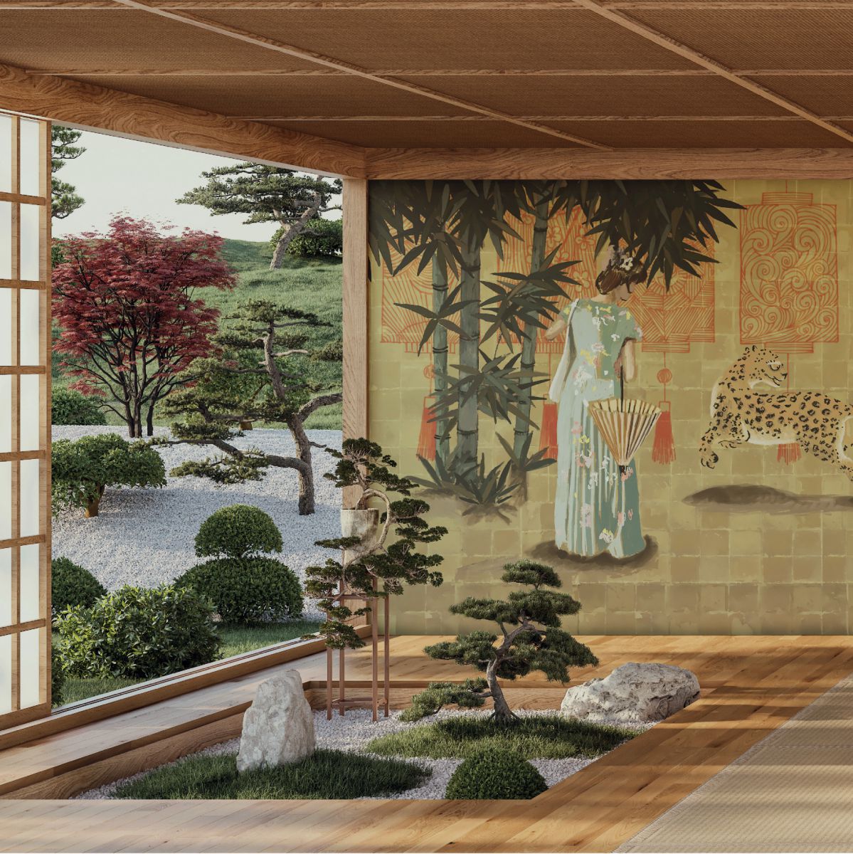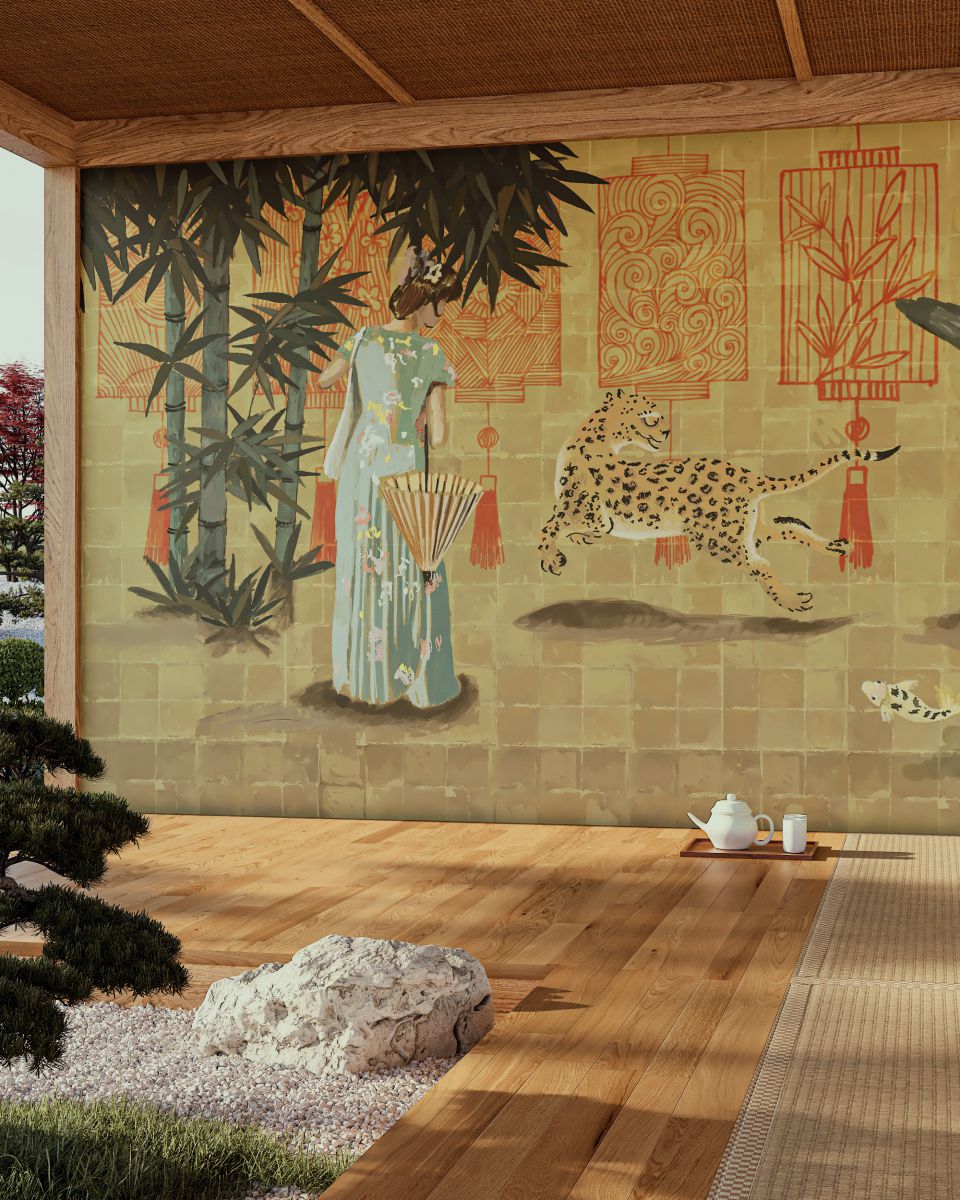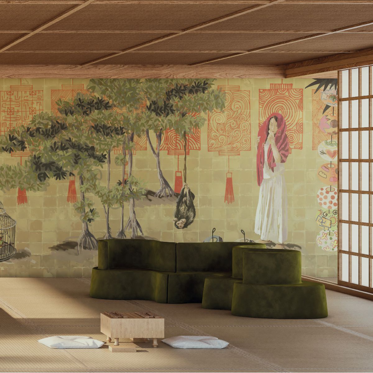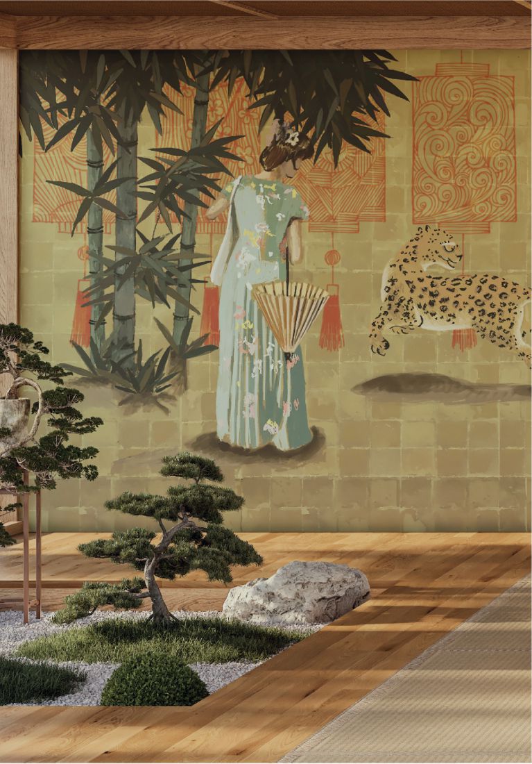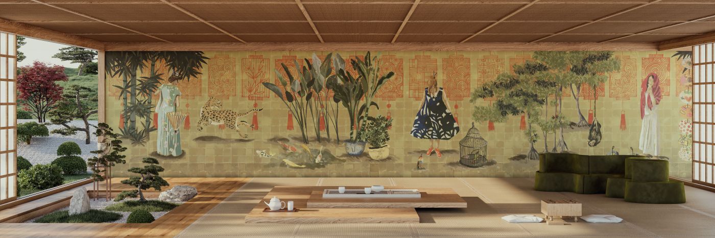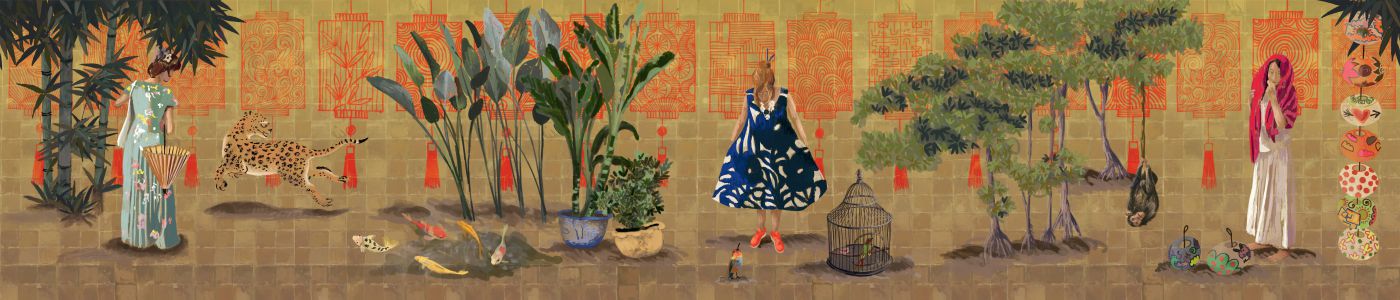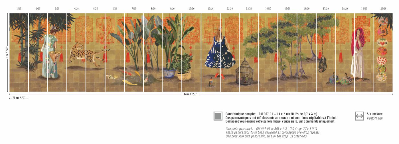 Abmessungen +/- 3% : Wandbild von 14m x 3m erhältlich in 20 Bahnen von 0,7m