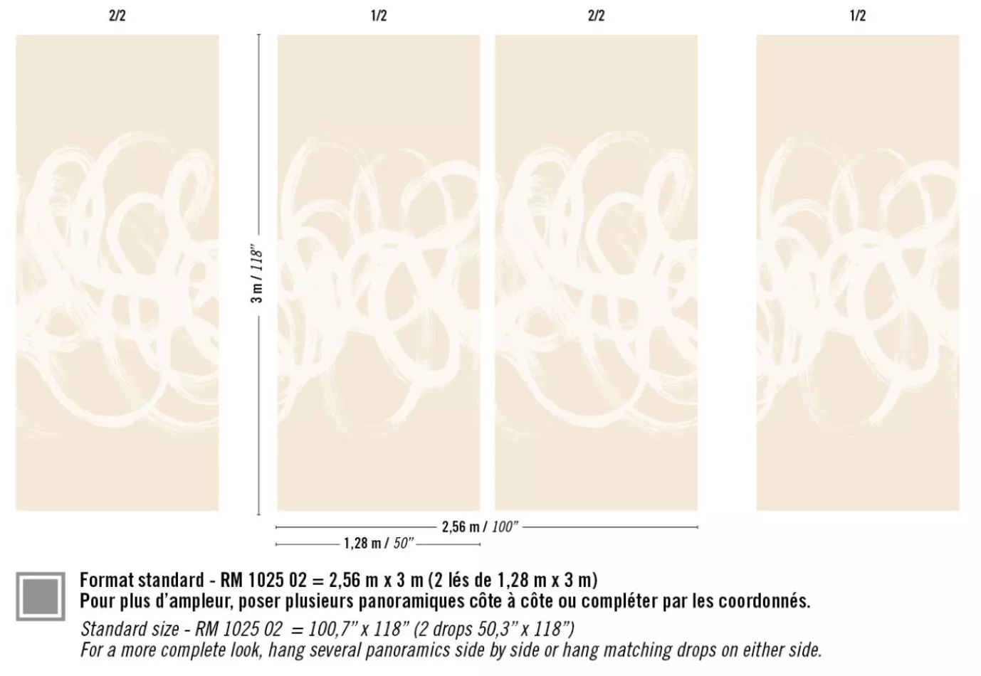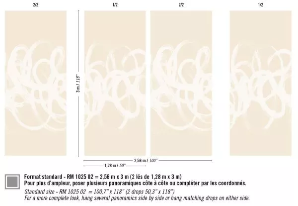 Abmessungen : Wandbild von 2.56m x 3m available in 2 Bahnen zu 1.28m
