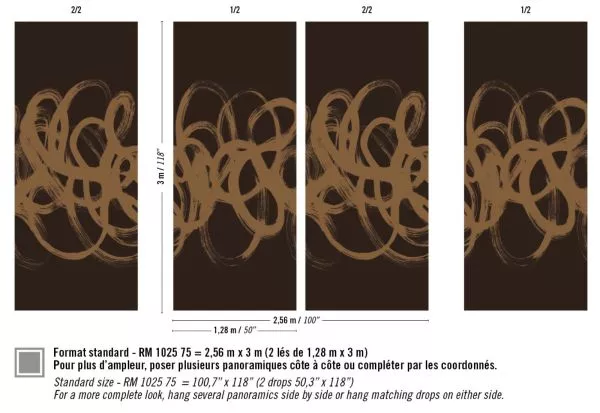 Abmessungen : Wandbild von 2.56m x 3m available in 2 Bahnen zu 1.28m