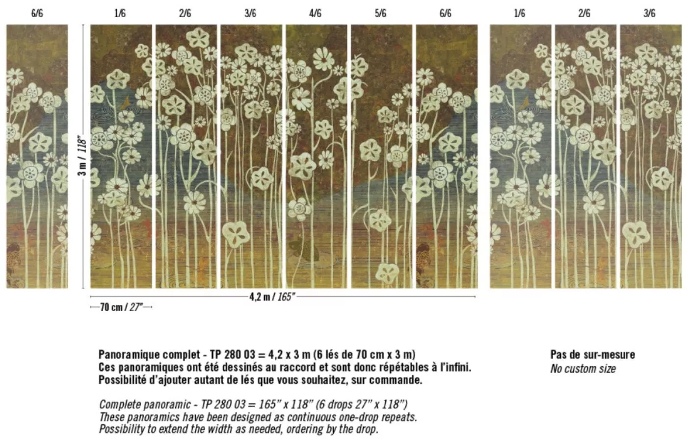 Abmessungen +/- 3% : Wandbild von 4.2m x 3m erhältlich in 6 Bahnen von 0.7m