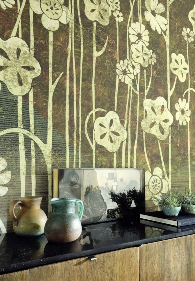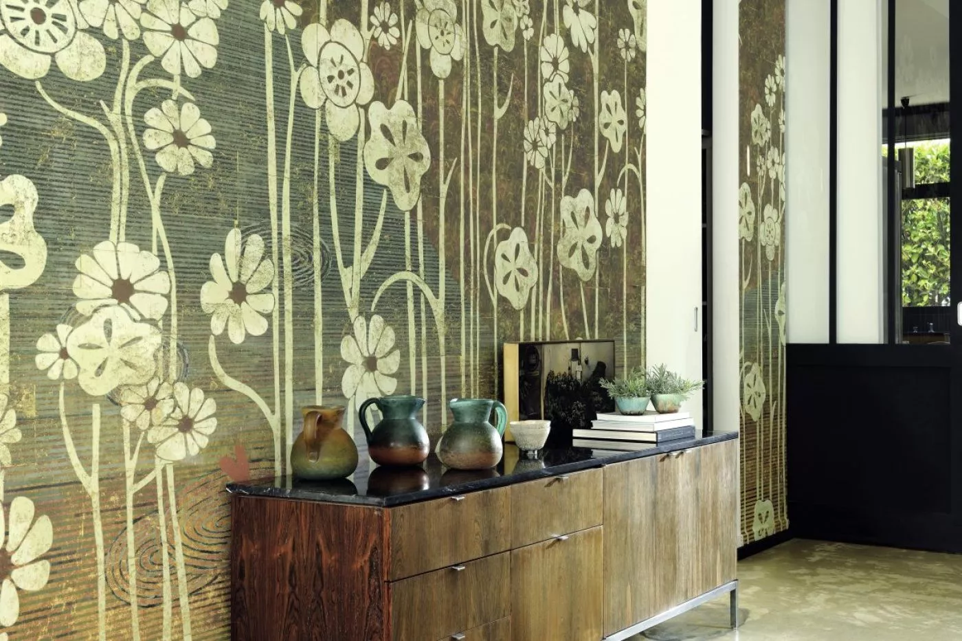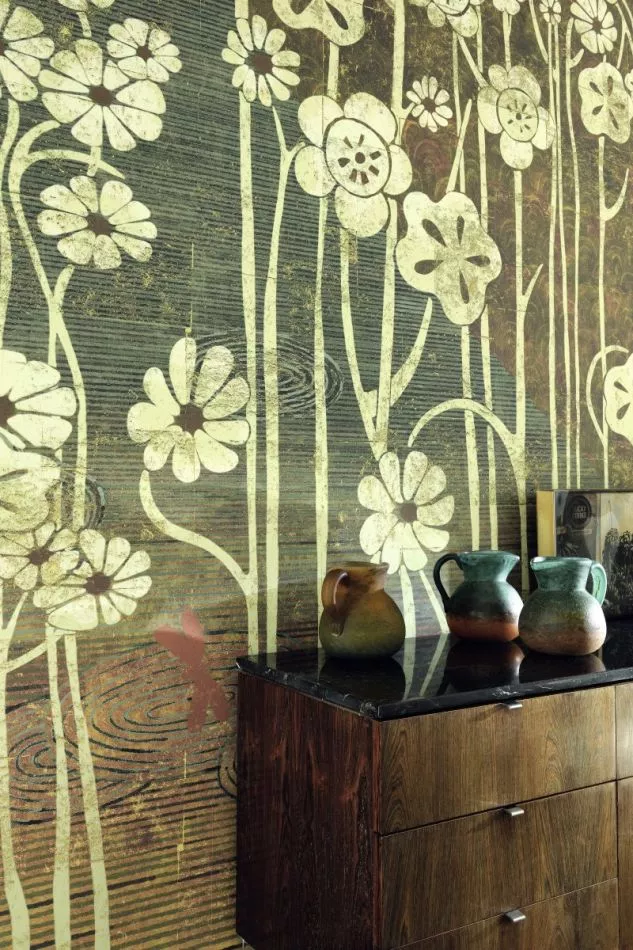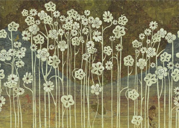 Das Universum ist in Bewegung. Iris, Vögel, Kirschblüten, Fische verlassen die berühmten Kimonos aus dem Land der aufgehenden Sonne und beseelen mit ihren Motiven die Wände. Der Raum wird lebendig und strahlt die anmutige Sanftheit japanischer Farben aus. Die Pracht dieser Panoramagemälde nimmt uns in einer nicht enden wollenden, einer unendlichen Geschichte gefangen .