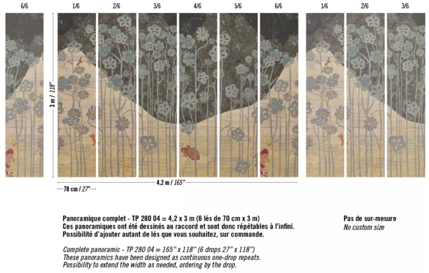Abmessungen +/- 3% : Wandbild von 4.2m x 3m erhältlich in 6 Bahnen von 0.7m
