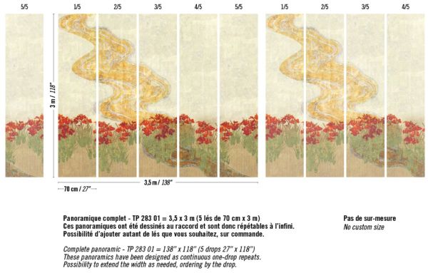 Abmessungen +/- 3% : Wandbild von 3.5m x 3m erhältlich in 5 Bahnen von 0.7m