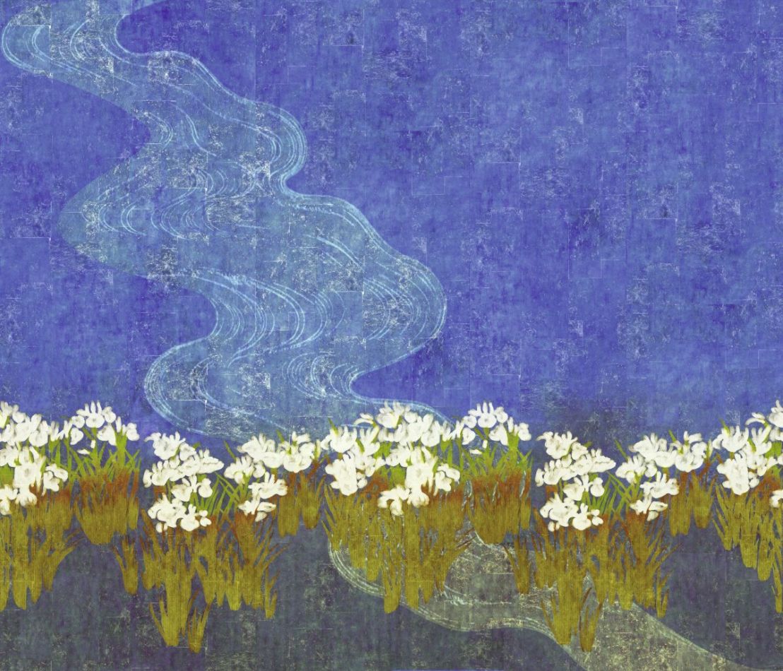 Das Universum ist in Bewegung. Iris, Vögel, Kirschblüten, Fische verlassen die berühmten Kimonos aus dem Land der aufgehenden Sonne und beseelen mit ihren Motiven die Wände. Der Raum wird lebendig und strahlt die anmutige Sanftheit japanischer Farben aus. Die Pracht dieser Panoramagemälde nimmt uns in einer nicht enden wollenden, einer unendlichen Geschichte gefangen .