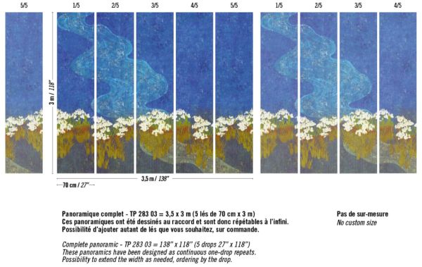 Abmessungen +/- 3% : Wandbild von 3.5m x 3m erhältlich in 5 Bahnen von 0.7m