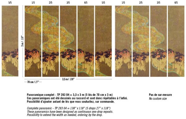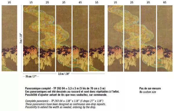 Abmessungen +/- 3% : Wandbild von 3.5m x 3m erhältlich in 5 Bahnen von 0.7m