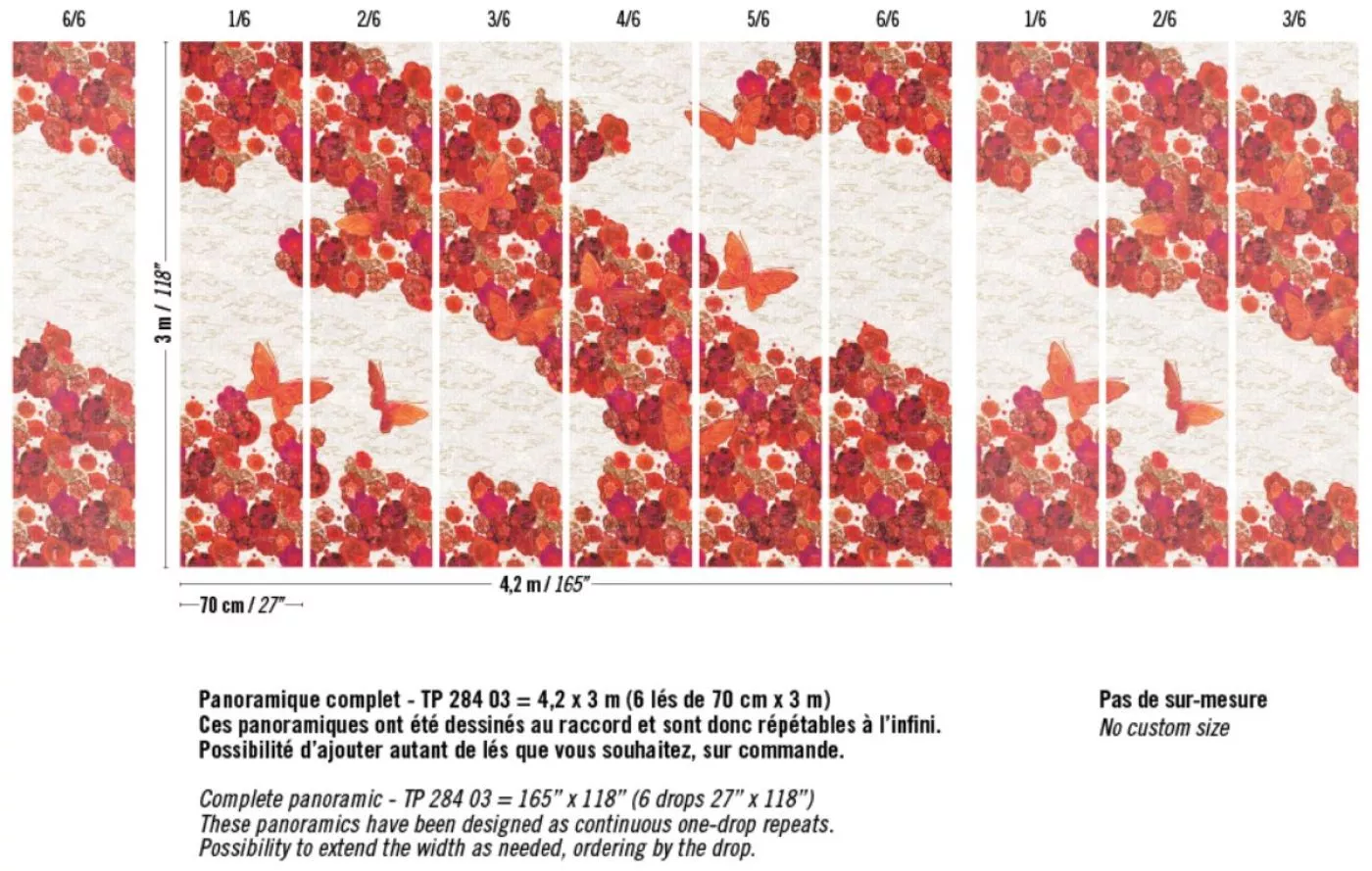 Abmessungen +/- 3% : Wandbild von 4.2m x 3m erhältlich in 6 Bahnen von 0.7m