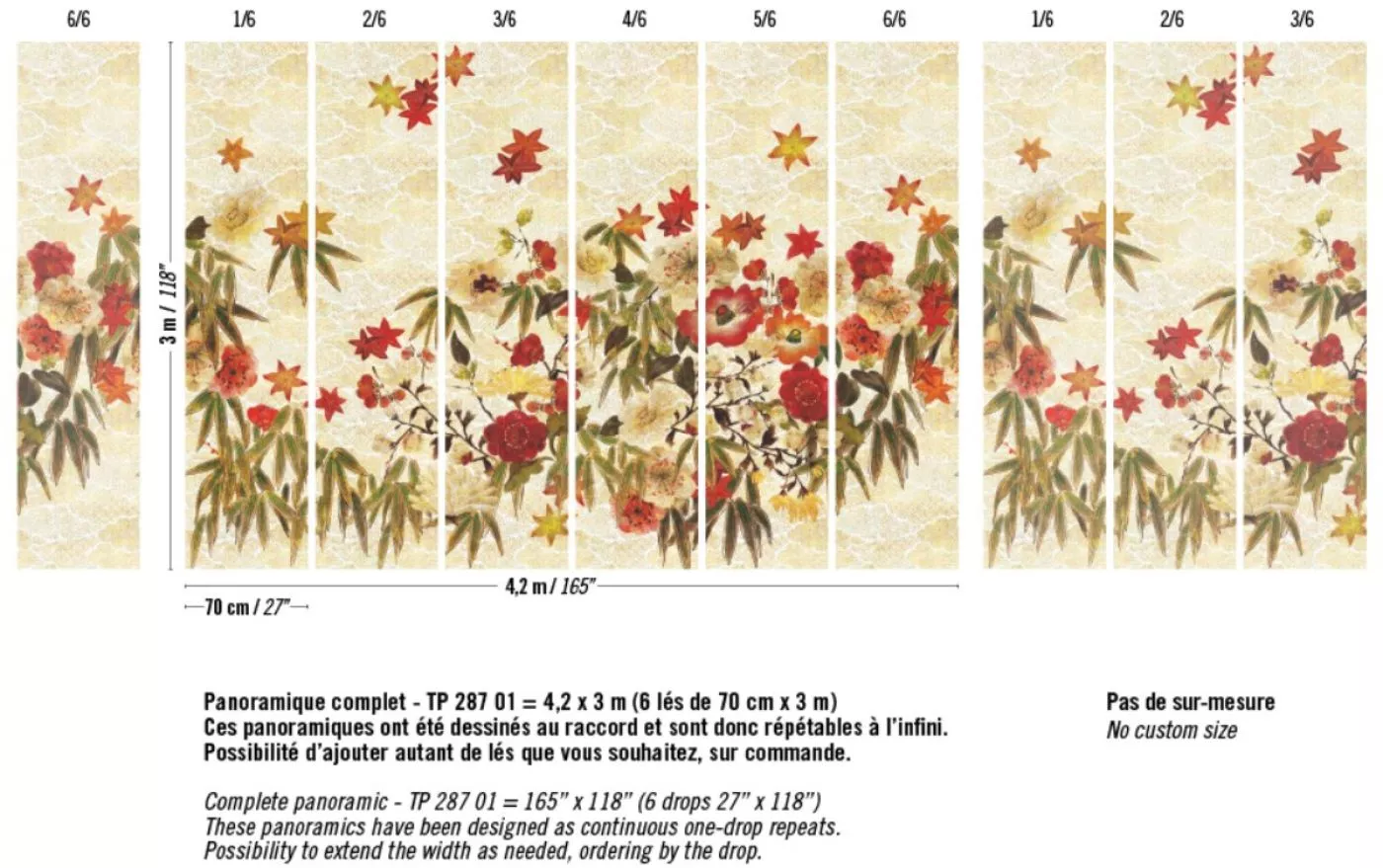 Abmessungen +/- 3% : Wandbild von 4.2m x 3m erhältlich in 6 Bahnen von 0.7m