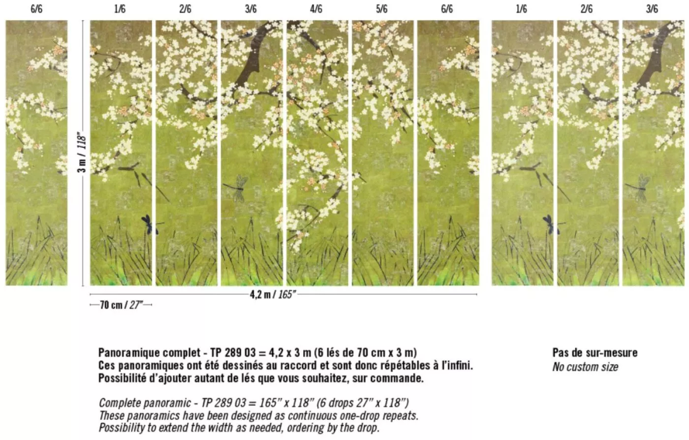 Abmessungen +/- 3% : Wandbild von 4.2m x 3m erhältlich in 6 Bahnen von 0.7m