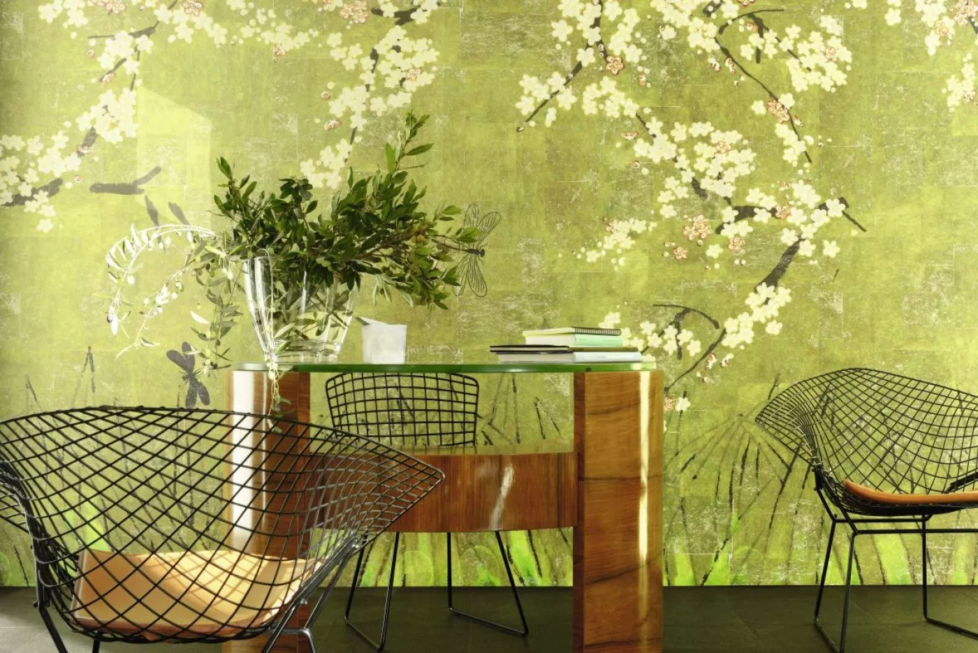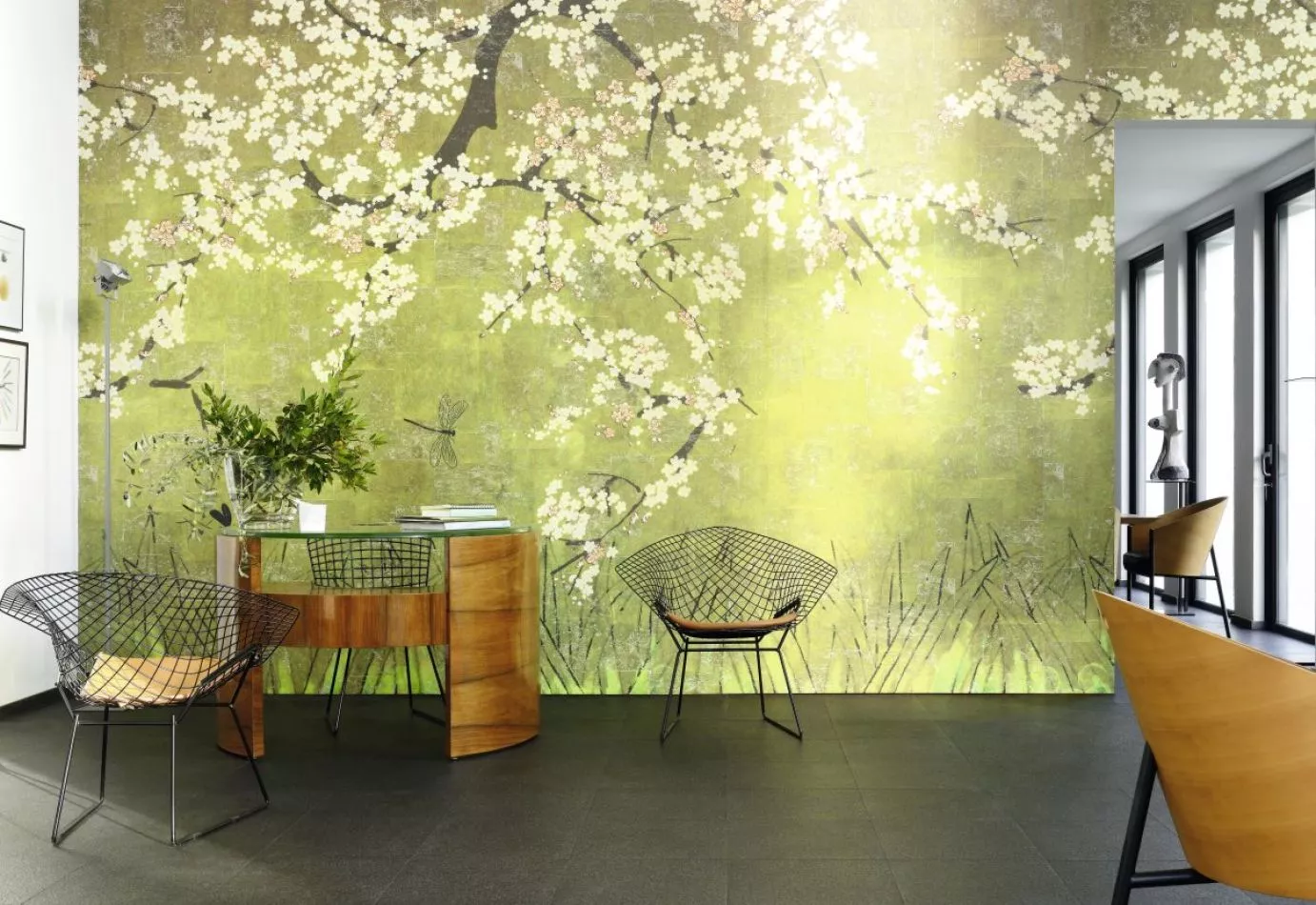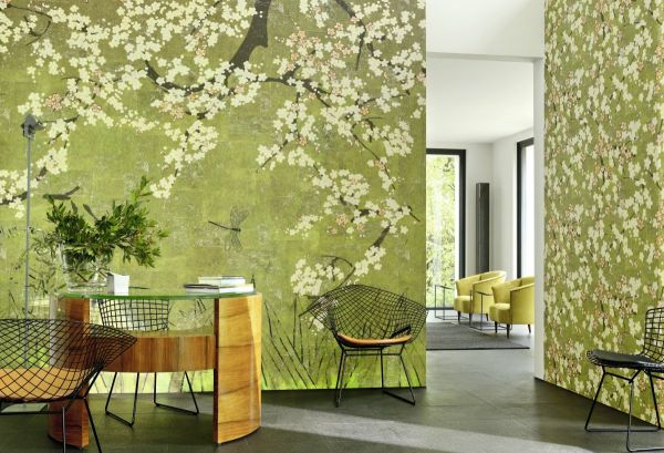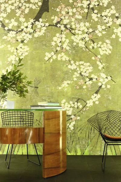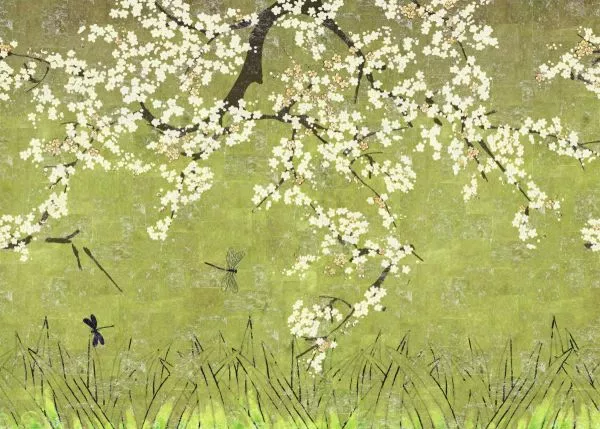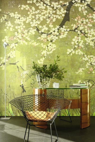 Das Universum ist in Bewegung. Iris, Vögel, Kirschblüten, Fische verlassen die berühmten Kimonos aus dem Land der aufgehenden Sonne und beseelen mit ihren Motiven die Wände. Der Raum wird lebendig und strahlt die anmutige Sanftheit japanischer Farben aus. Die Pracht dieser Panoramagemälde nimmt uns in einer nicht enden wollenden, einer unendlichen Geschichte gefangen .