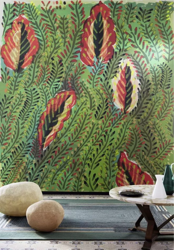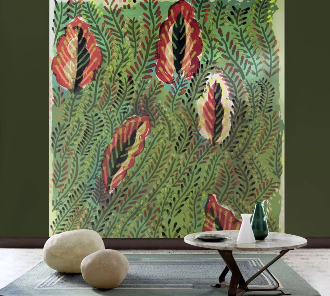In dieser vielfarbigen Tapetenkollektion übertrumpfen sich fröhlich ausgeprägte Blumen- und Pflanzenmuster.