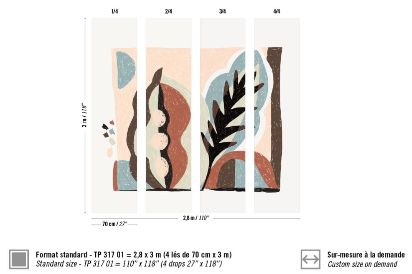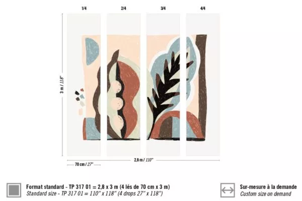 Abmessungen +/- 3% : Wandbild 2,80 m x 3 m, erhältich in 4 Bahnen je 0,7 m Breite oder auf Anfrage ihr Wunschmaß