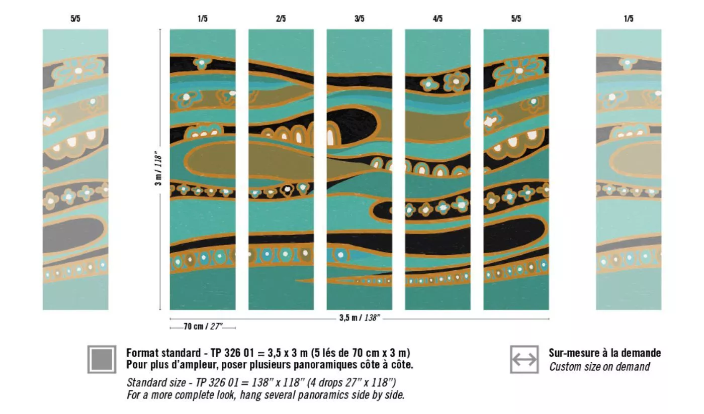 Abmessungen +/- 3% : Wandbild 3,5m x 3m, erhältich in 5 Bahnen je 0,7m Breite