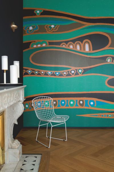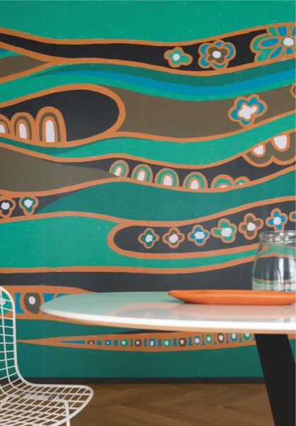 Eine von der indischen Miniaturmalerei inspirierte Tapetensammlung: farbige, stilisierte Darstellungen von Szenen aus dem Alltag. 5 Designs und 3 Panoramamotive.